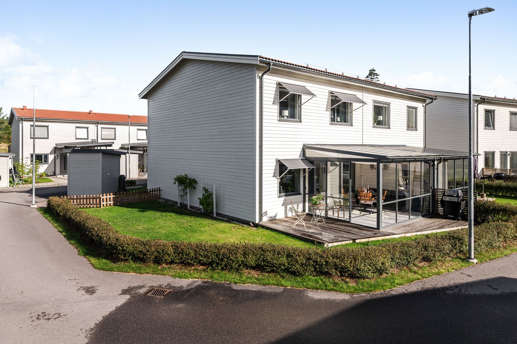 Redan i hallen möts du av en inbjudande atmosfär och en öppen planlösning som binder samman bostadens sociala ytor. Hallen flyter ihop med det smakfullt inredda köket som är både praktisk och stilren med generösa arbetsytor och gott om förvaring. Köket öppnar naturligt upp mot vardagsrummet som erbjuder plats för både matsalsmöbel och soffgrupp. De stora fönsterpartierna ger ett fantastiskt ljusinsläpp och skapar en luftig känsla. Från vardagsrummet når du det inglasade uterummet som är en uppskattad tillbyggnad som förlänger säsongen och skapar en härlig plats för umgänge. Härifrån tar du dig vidare ut till den trevliga altanen och den lättskötta trädgårdstomten. På entréplanet finns även ett rymligt helkaklat duschrum utrustat med tvättmaskin, torktumlare och goda förvaringsmöjligheter.