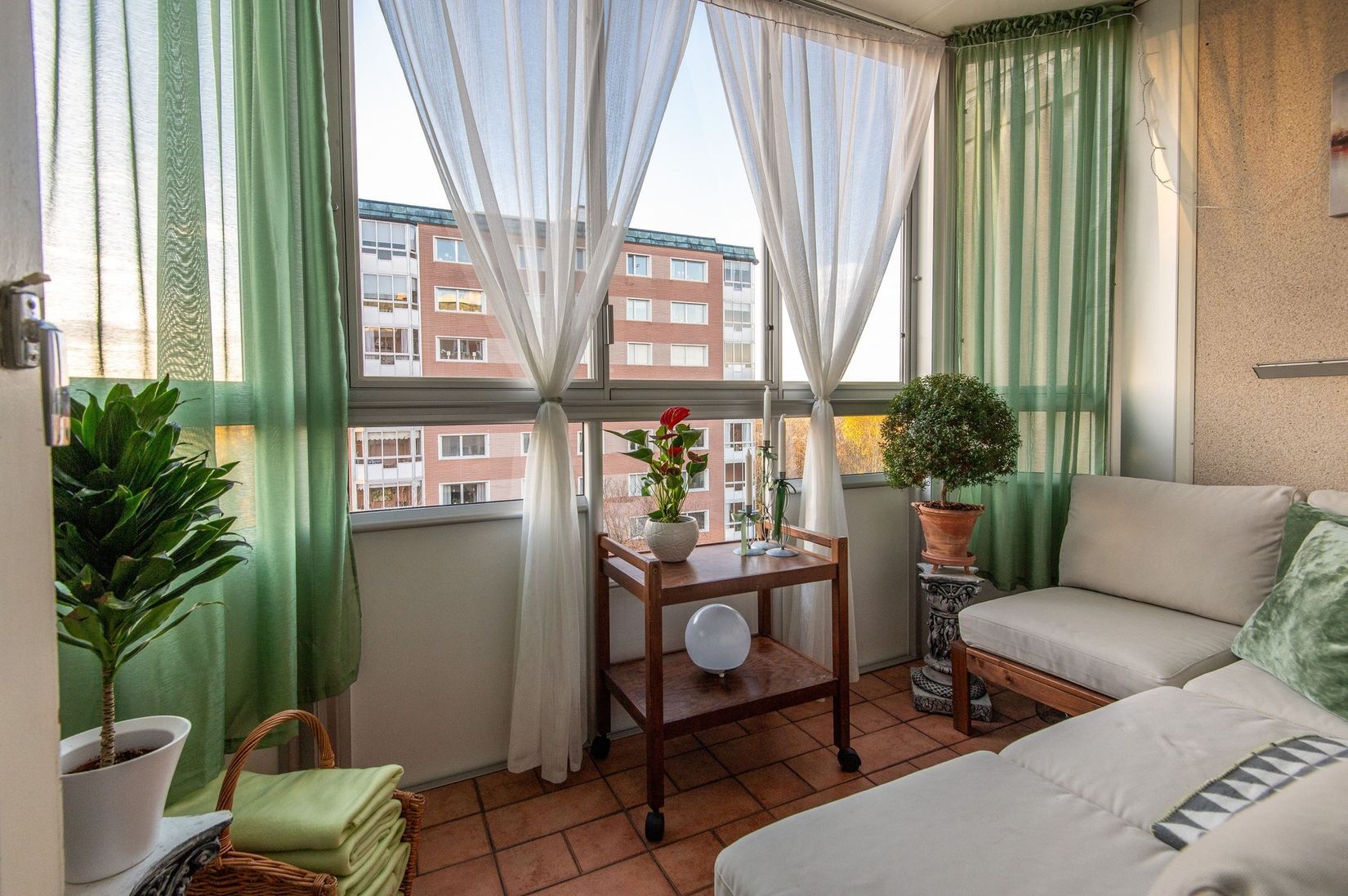 Det generösa vardagsrummet erbjuder plats för både soffgrupp och matbord, vilket skapar en social och harmonisk yta att umgås på. Planlösningen är genomtänkt med ett välutrustat kök och två sovrum, varav det ena med extra gott om utrymme. Den inglasade balkongen ger fin utsikt och kan erbjuda många sköna dagar och kvällar.