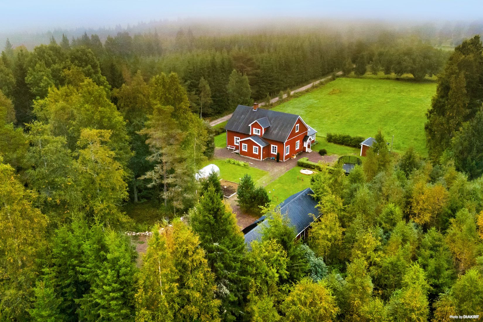 Beläget på stor och vacker natur/trädgårdstomt utan några grannar inpå husknuten. Fristående uthus med snickeriverkstad/förråd, garage för en bil, samt vedförråd och carport för flera bilar eller mindre traktor. Här finns också en fin jordkällare och trädgårdslandet skapar möjlighet för egna odlingar.
