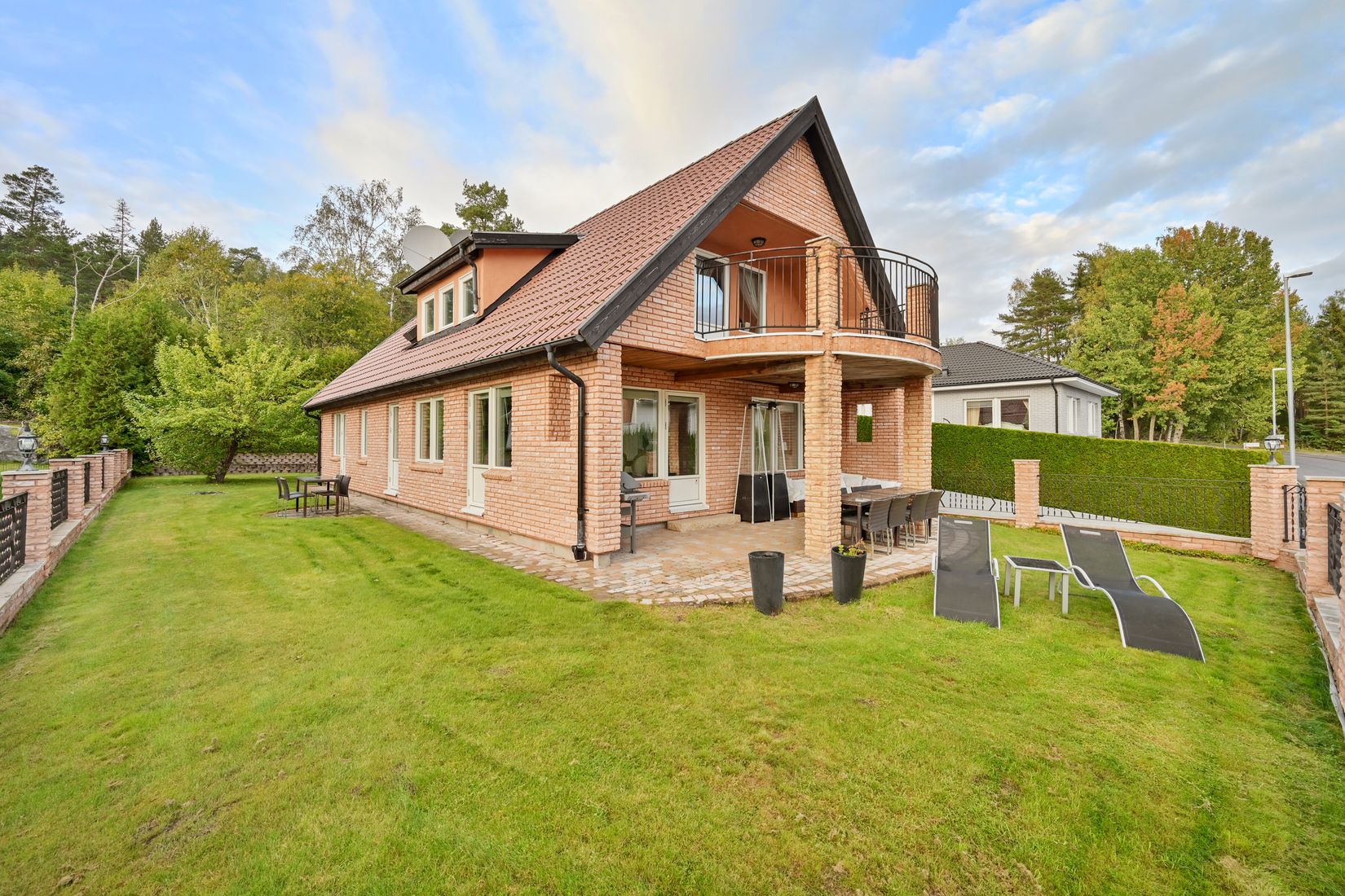 Entréplanet välkomnar med en ljus och generös hall med extra takhöjd som genast ger en luftig och inbjudande känsla. Härifrån når ni det stora köket med bardisk som ligger i öppen anslutning till matplatsen och vardagsrummet. Här finns gott om plats för både vardagsliv och festliga middagar med vänner och familj. På detta plan finns också två sovrum, en praktisk tvättstuga med groventré samt ett helkaklat badrum utrustat med både jacuzzi och bastu, en riktig vardagslyx. Övreplan rymmer tre sovrum, ett generöst allrum, duschrum och klädkammare. Master bedroom erbjuder goda förvaringsmöjligheter med skjutdörrsgarderober och har dessutom utgång till en egen balkong. Ytterligare ett sovrum har också balkongutgång, vilket ger huset flera fina uteplatser att njuta av.
