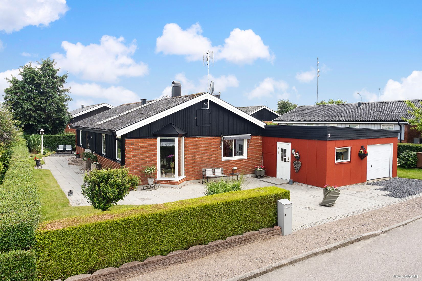 Välkomna till detta pedantiskt välskötta hem! Underbar enplansvilla som har en härlig atmosfär och en fin, öppen planlösning. Här är ett vackert och trivsamt vardagsrum med en sprakande kamin i öppen plan mot kök och matplats. Genomgående parkettgolv i alla rum. 2 stora sovrum och ett helkaklat badrum. På baksidan har man ett trevligt uterum och en underbar stensatt uteplats med markis. Allt mycket smakfullt och välvårdat! Villan är flexibel då man kan göra ett extra sovrum och en toalett till om man önskar. (har varit det tidigare) Garage och bra bilplats på uppfarten. Ett bekvämt boende med vattenburen värme samt en luft/luft. Intresserad? Kontakta mäklaren för mer information!
