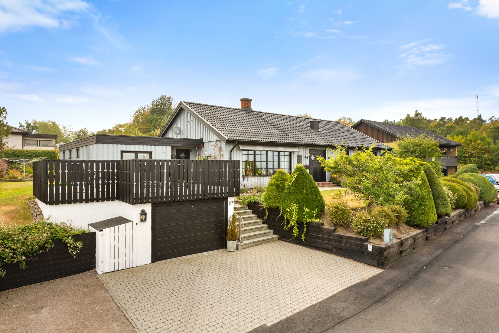 Varmt välkomna till Solhemsvägen 27 - Här väntar ett charmigt och välplanerat enplanshus med gott om utrymme för hela familjen. Här får du rymliga sociala ytor, en insynsskyddad trädgård med inglasat uterum samt en terrass med fantastisk utsikt över det omgivande landskapet
