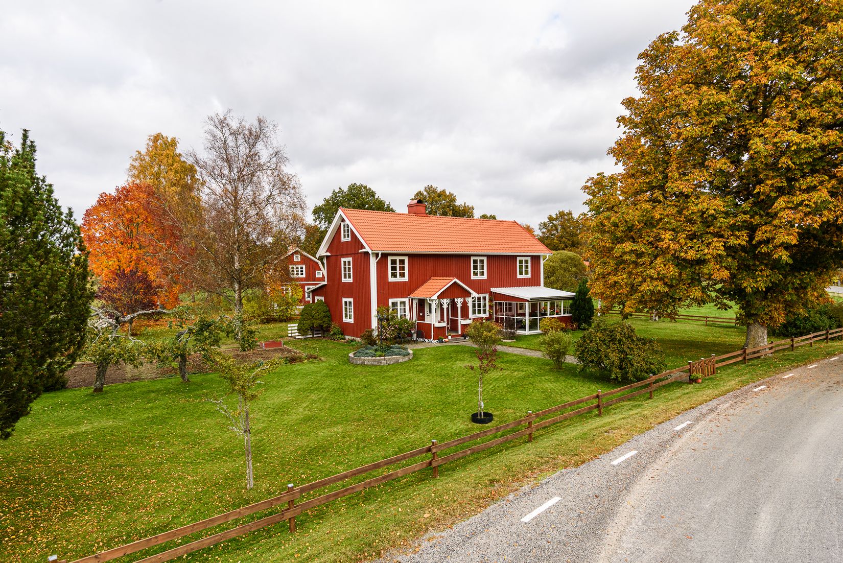 Den stora och lummiga tomten om 1722 kvadratmeter inbjuder till lek och avkoppling. Den inglasade altanen på framsidan av huset blir en plats där du kan njuta av sommarens ljumna kvällar.