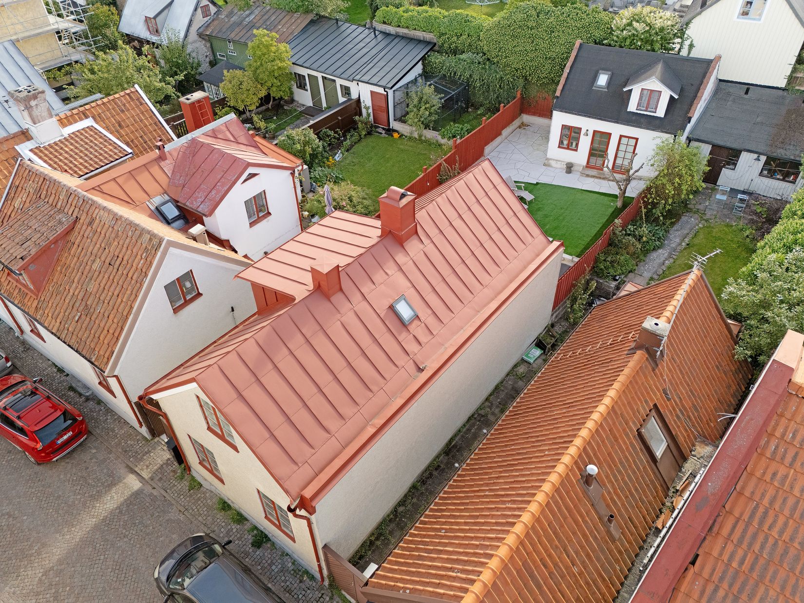 Villan om 97 m² boarea är smakfullt inredd med vackra trägolv med vattenburen golvvärme, platsbyggd inredning och ett stilrent kök med utgång till uteplatsen som är av kalkstensflis. På övervåningen väntar två sovrum med platsbyggd förvaring även här och ett helkaklat badrum med dusch och toalett samt tvättpelare. Källaren rymmer idag pannrum samt ett utvecklingsbart utrymme, perfekt för den som drömmer om bastu, vinkällare eller hobbyrum. På fastigheten finns även ett gårdshus i två plan om 34 m², med två sovrum samt ett helkaklat badrum med dusch och toalett. Med sin charmiga takhöjd, synliga bjälkar och luftiga känsla fungerar det perfekt som gästhuset, tonårsdel eller uthyrning. Hela fastigheten är totalrenoverad inkl. vatten- och avloppsledningar, värme, isolering, ventilation, el. Även system för styrning av belysningen är installerad (plejd.)