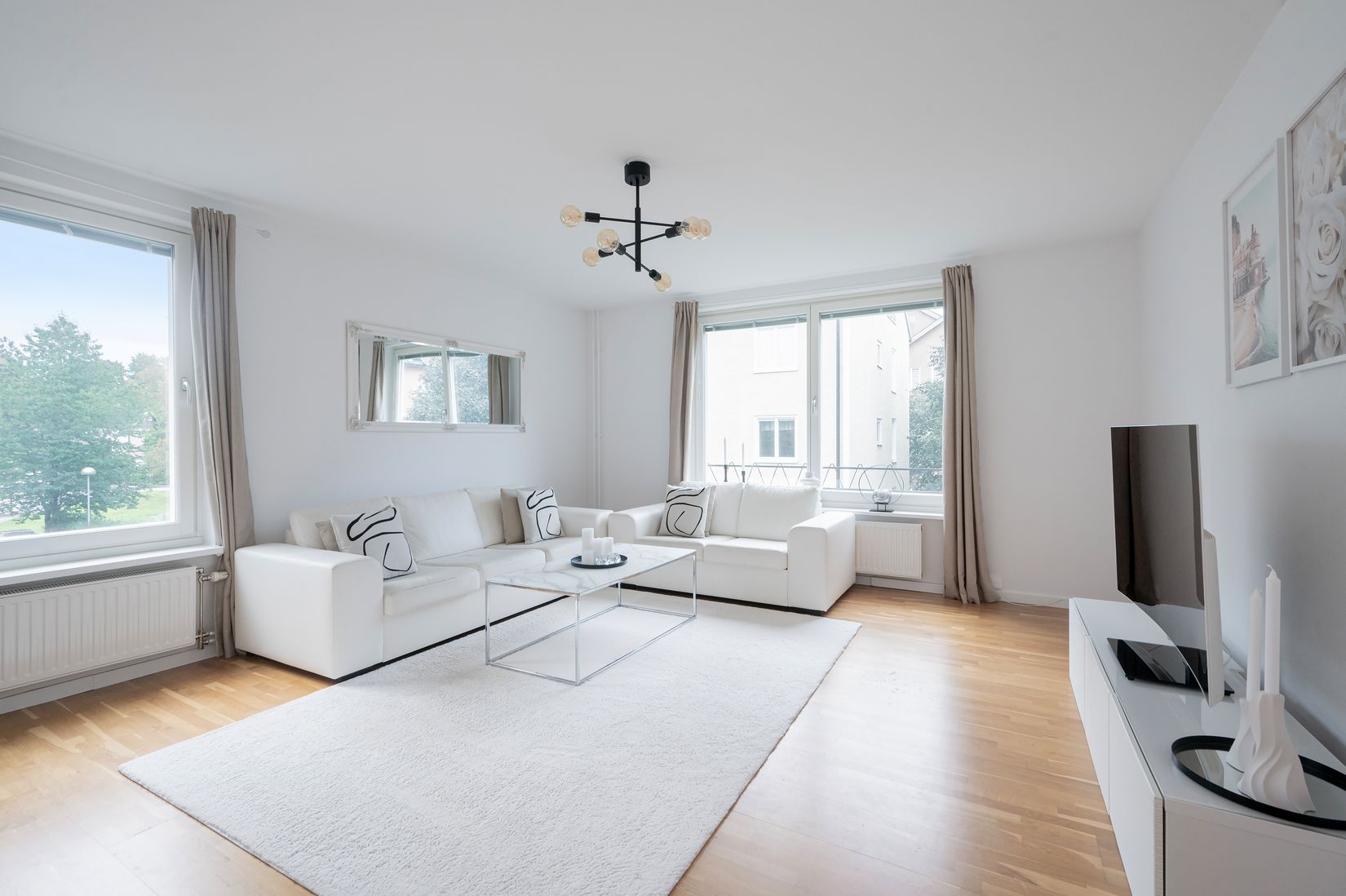 Välkommen till denna rymliga och stilrena 3:a om 75kvm där du möts av en bostad med stora rum, generöst ljusinsläpp och en genomtänkt planlösning som gör hemmet enkelt att inreda. Med ett gavelläge flödar dagsljuset in från flera väderstreck och skapar en harmonisk atmosfär i hela lägenheten. De vita väggarna och de vackra parkettgolven löper enhetligt genom alla rum och ger en känsla av nyproduktion, samtidigt som planlösningen bevarar den klassiska charmen från 50-talet. Bostaden är totalt genomgången och i mycket bra skick.