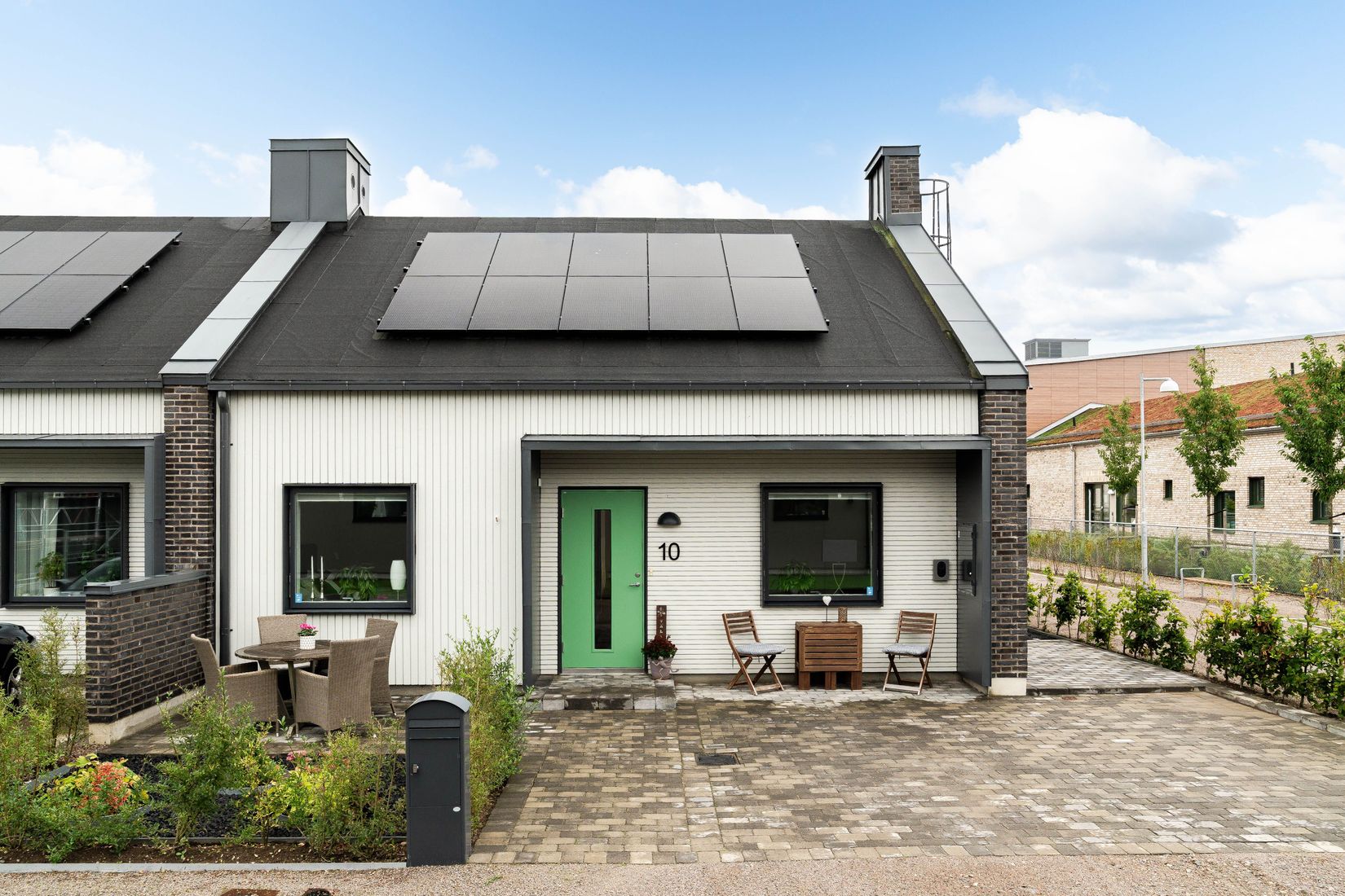 Bostaden är utrustad med solceller och elbilsladdare – ett hem för dig som värdesätter låga driftskostnader och hållbarhet. Huset är beläget på ett attraktivt hörnläge som ger både extra ljusinsläpp och en känsla av rymd även utomhus. Trädgården i sydost bjuder på en inbjudande uteplats med trädäck – en perfekt plats att njuta av förmiddagssolen med en kopp kaffe i lugn och ro. Här finns dessutom ett spabad intill förrådet att nyttja året om. På framsidan av huset finns uppställningsplats för bil och en mindre stenlagd uteplats att njuta av solens sista strålar.