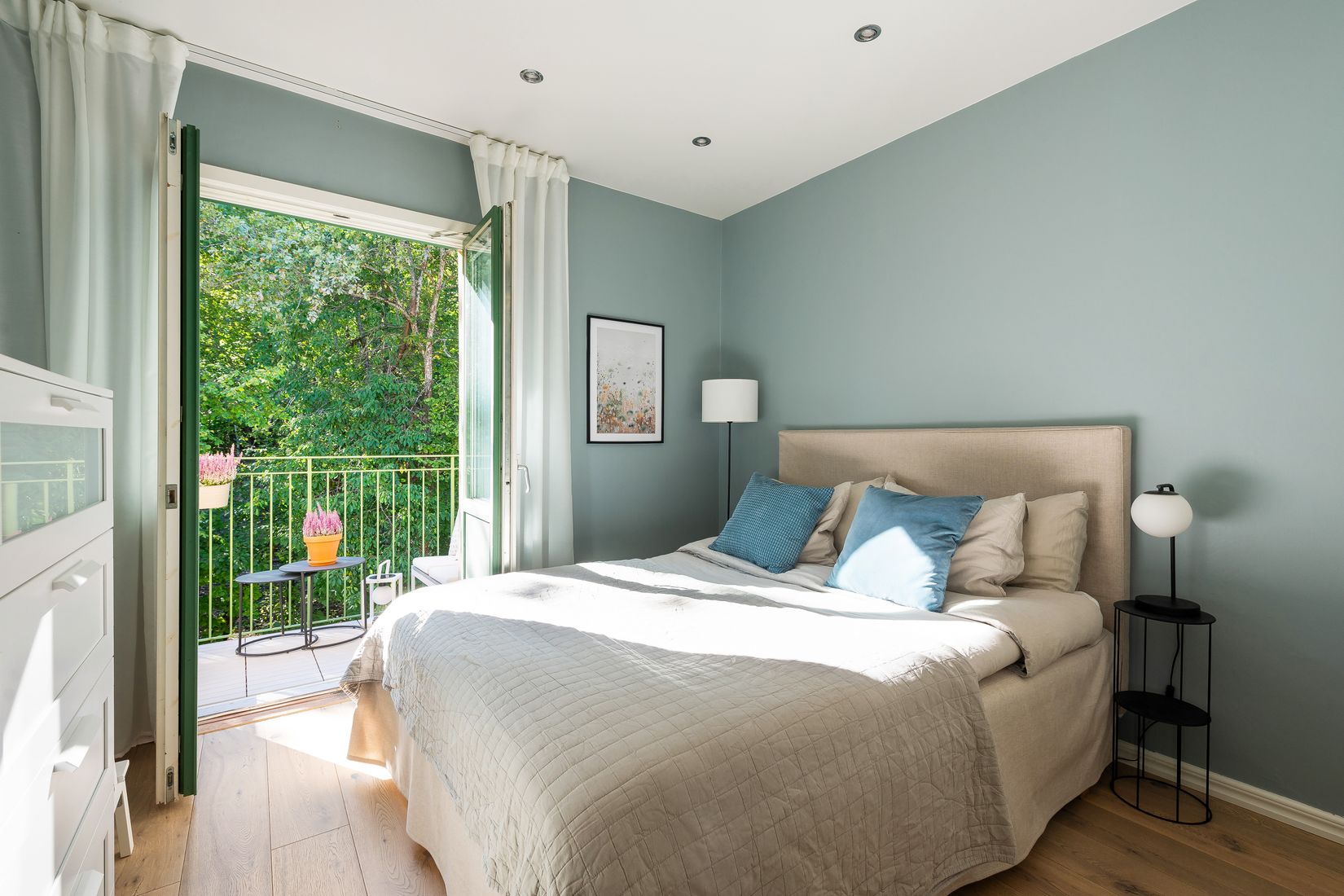 Denna ljusa och hemtrevliga bostad bjuder på ett välplanerat kök med plats för matgrupp samt ett rymligt vardagsrum som enkelt rymmer soffa, TV, bokhylla, skrivbord och mer. Tack vare gavelläget får bostaden ett fantastiskt ljus från tre väderstreck som skapar en härlig atmosfär. Sovrummet är generöst tilltaget med gott om garderober för optimal förvaring och härifrån nås den soliga balkongen genom eleganta dubbeldörrar – en underbar förlängning av hemmet. Genomgående bra förvaringsmöjligheter och tillhörande förråd i källaren gör bostaden både praktisk och trivsam.