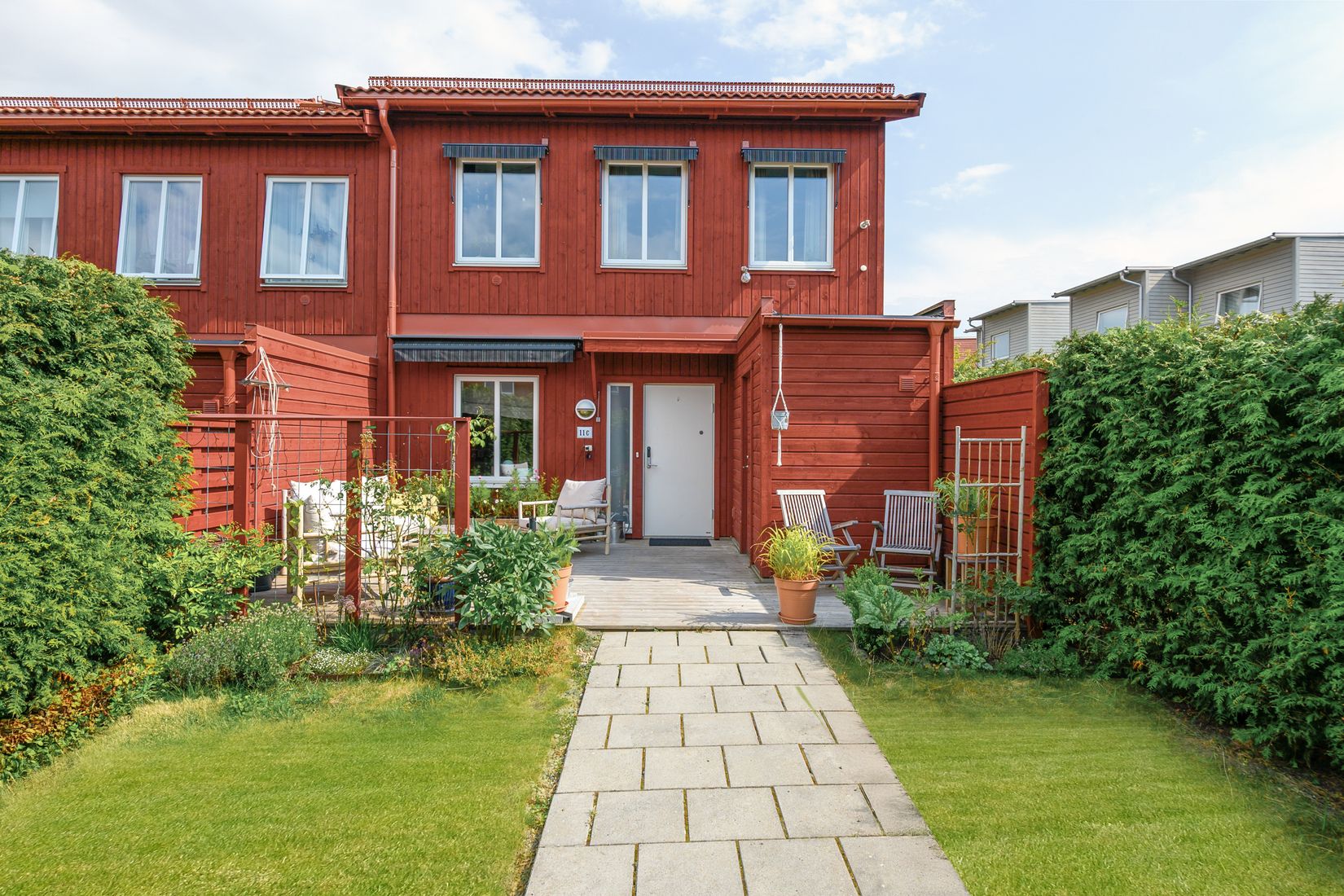 Med ett av områdets bästa och lugnaste gavellägen längst in på mindre gata. Privat och fint boende mot allmänning. Här bor du med direkt närhet till utmärkta bussförbindelser, förskola, badsjöar och vackra naturområden. Ett perfekt boende för barnfamiljen som söker en trygg och lättskött boende i gemytlig miljö. Två rymligt och lättskötta uteplatser som erbjuder sol hela dagen och på kvällen. På husets framsida finns en altan där man kan njuta av solen hela dagen, uteplatsen ramas fint in av thujahäckar. Här finns även en liten trädgård med odlingslådor, planteringar och gräsyta.