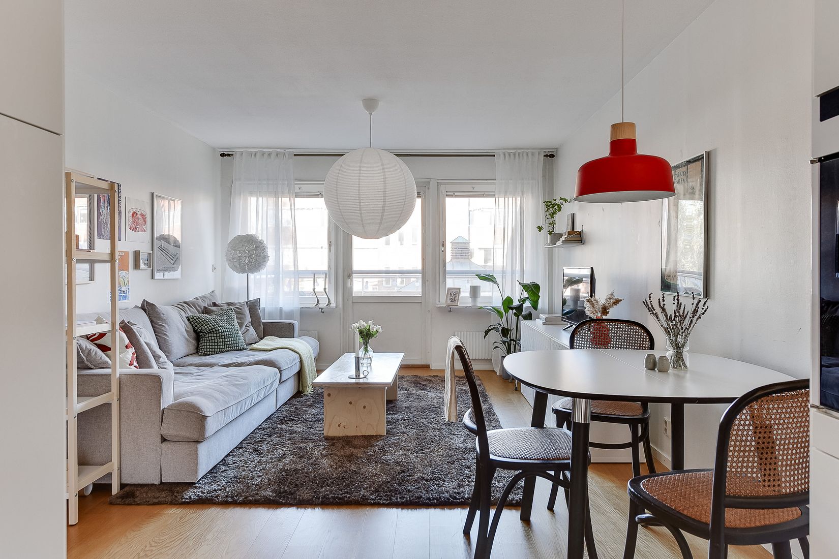 Välkomna till Magasinsgatan 9A med detta fantastiska läge mitt i centrum. En ljus lägenhet om 2 rum och kök som ni finner på andra våningen av fem. Huset har hiss. Lägenheten disponeras genom en social planlösning och innehar ett kök med intilliggande matplats i öppen planlösning mot vardagsrumsdelen. Från vardagsrummet nås balkongen som vetter mot väster. I övrigt finns ett sovrum och en hall med god förvaring. Genomgående ljusa och fräscha ytskikt med ett genomgående parkettgolv och ett slitstarkt och lättskött klinkergolv i hallen. Alla väggar är vitmålade. I lägenheten finns ett helkaklat duschrum med grått klinker och vitt kakel. Här finns duschhörna med vikbara duschväggar i glas, en kommod med handfat och spegelskåp. Tillhörande förråd finns även i källaren för ytterligare förvaring.