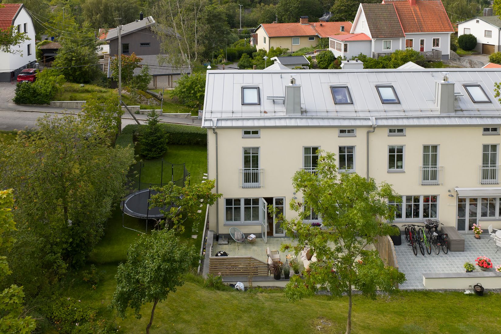 Fantastiskt gavelläge som bjuder på både lugn och frihetskänsla. På baksidan möts du av en solig altan mot den trevliga innergården - perfekt för lata sommardagar, grillkvällar och umgänge. På framsidan välkomnas du av en stilfull stenbelagd uteplats, med eftermiddag och kvällssol. Runt huset breder en grönskande gräsmatta ut sig med gott om plats för lek, spel och trädgårdsdrömmar - en riktig oas för både stora och små.