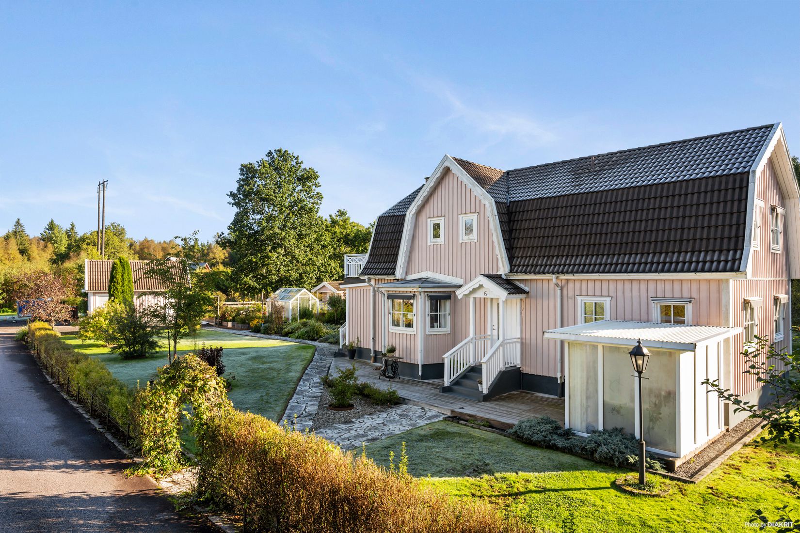 Det här hemmet erbjuder flera sovrum och generösa gemensamhetsytor, men det är utemiljön som verkligen gör det till något extra. Den stora trädgården är en grön oas med gott om plats för barnens lek, spring och bollspel, samtidigt som de vuxna kan njuta av blommande rabatter, ett växthus för egna odlingar och flera härliga uteplatser. På baksidan finns ett inglasat uterum och en altan i soligt läge för frukost i morgonsolen, medan framsidan finns uterum med altan som bjuder på eftermiddags- och kvällssol – perfekt för grillkvällar, fika med vänner eller en stunds lugn i kvällsljuset. Här finns utrymme för hela familjen att leva ett aktivt och naturnära liv, året om. Dessutom ligger både skola och kollektivtrafik med tåg och buss på bekvämt avstånd, vilket gör vardagen smidig för både stora och små.