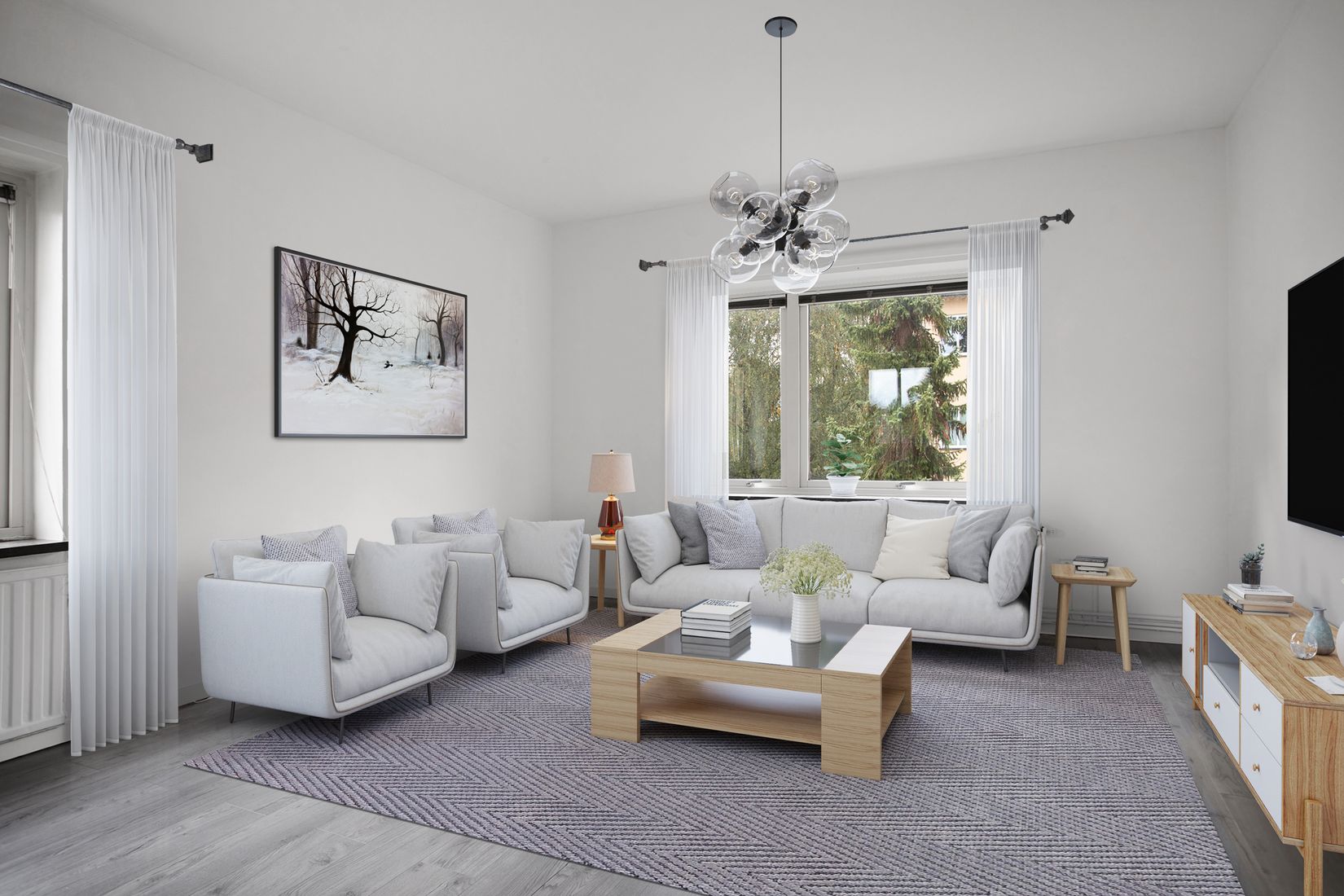 Fin möjlighet att bo på lugn sidogata mitt i centrum. Ljus och modernt renoverad tvåa i smakfullt utförande och härlig ljusinsläpp där lummiga omgivningar samsas med ett fritt gavelläge och fransk balkong. Stamrenoverat badrum med tvättmaskin och uppdaterat kök i hög standard där det erbjuds detaljer som bänkskivor i sten, induktionshäll och varmluftsugn. Genomgående ytskikt och enhetligt nymålade väggar.