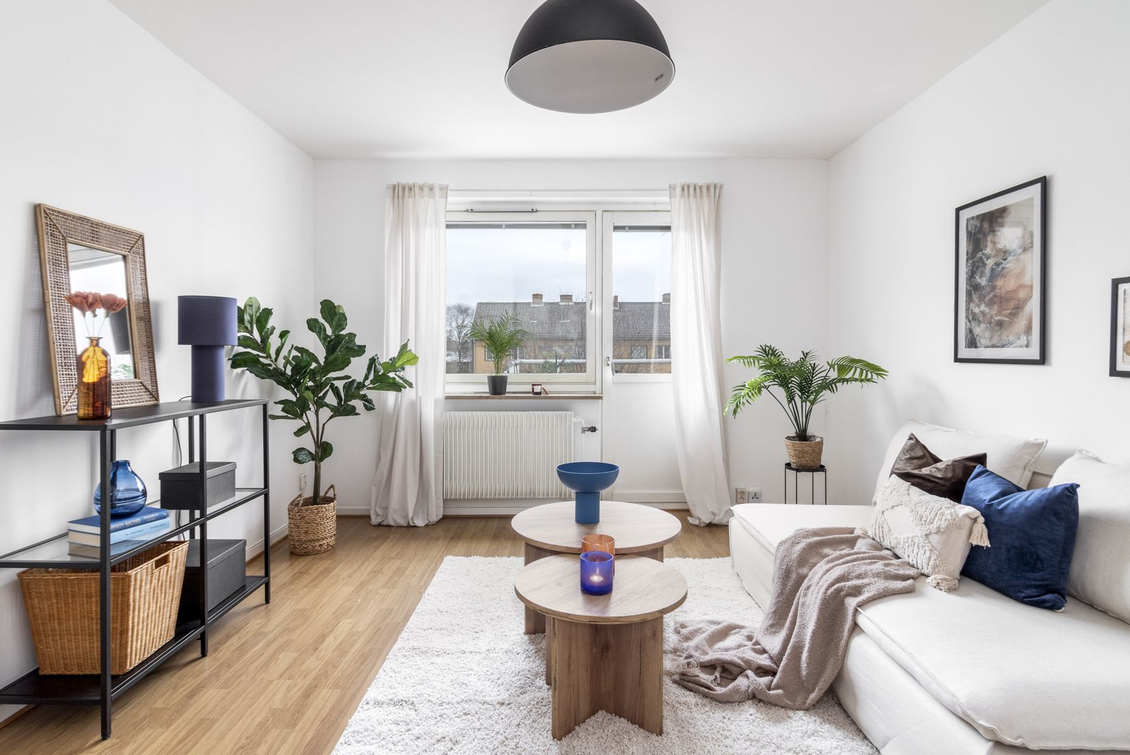 Du välkomnas in i en ljus och inbjudande hall med utrymme för avhängning och förvaring i garderober. Genomgående ljusa ytskikt och ett enhetligt laminatgolv präglar bostaden. Vidare in i bostaden når ni det fullutrustade köket med allt man behöver såsom spis med ugn samt kyl/frys, köket erbjuder dessutom gott om utrymme för en matplats för fyra personer. Generöst vardagsrum med plats för både soffgrupp samt säng med tillhörande nattduksbord. Från vardagsrummet nås lägenhetens balkong med bra solläge in mot föreningens lugna och lummiga innergård. Badrummet renoverades i föreningens regi i samband med stambytet 1993.