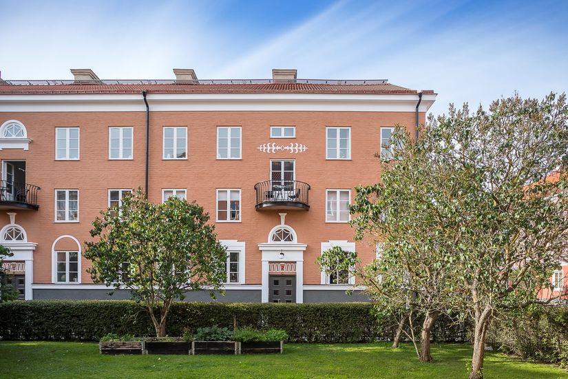 Ljuvligt boende i vacker byggnad från 1928 där tidstypiska detaljer som bl a generös takhöjd, fiskbensparkett, trägolv, spegeldörrar och charmiga fönster med djupa fönsternischer är svåra att motstå. De 61 kvm med ljusinsläpp från två väderstreck har en mycket luftig känsla och utsikten mot annan vacker, samtida bebyggelse, bidrar också till extra trivsel.