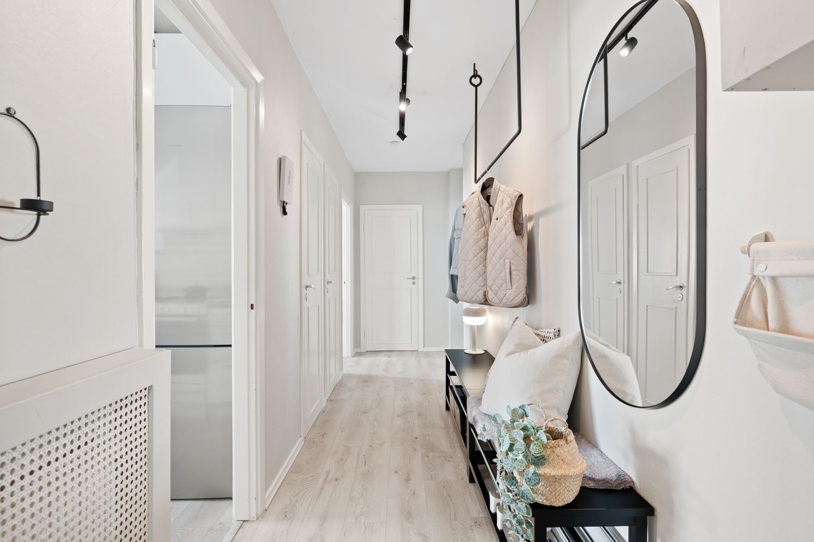 Välkommen in till denna fina tvårummare på 57,5 välplanerade kvadrat med genomgående ljus inomhusmiljö då bostaden har ljusinsläpp från två väderstreck. Redan då du stiger in i hallen möts du av ett välkomnande som om du klev in i ett inredningsmagasin. Följt av ett fräscht kök med vita luckor som uppdaterats på senare år och fullutrustad maskinpark. Köket rymmer även plats för matgrupp för 4-5 personer. Vardagsrummet är väl tilltaget till ytan med nya golv och nymålade släta väggar som ger ett fräscht uttryck. Stilen känns påkostad och här finns plats för både den större soffan och matgrupp. Härifrån ansluter access till den inglasade och väl tilltagna balkongen i soligt söderläge!
