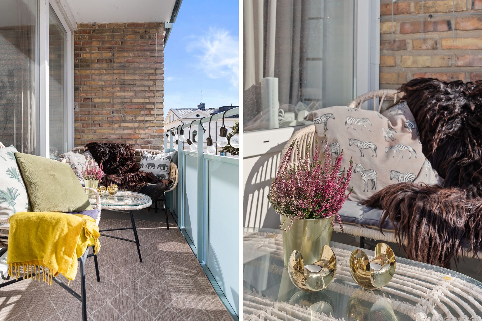 Bostaden erbjuder ett rymligt vardagsrum med plats för både soffgrupp och matplats. Här finns också en dekorativ öppen spis som inte är i bruk, men som på ett stämningsfullt sätt kan lyftas fram med blockljus eller annan inredning. Från vardagsrummet nås den soliga balkongen i söderläge, en härlig plats att njuta av årets varma dagar.