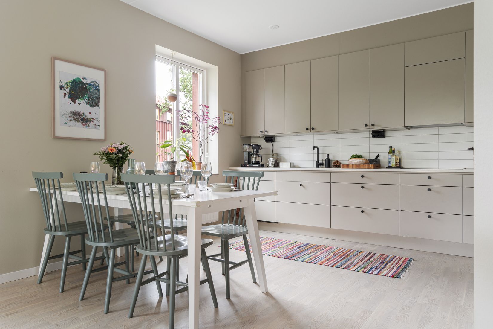 Det ljusa vardagsrummet har en öppen planlösning och smälter sömlöst ihop med det moderna köket. Här kan du njuta av sociala tillställningar och middagar med familj och vänner i en inbjudande och stilren miljö. För den som älskar naturen är den stora balkongen på 20 kvm en riktig höjdpunkt. En del av balkongen är inglasad. Här kan du njuta av utsikten över den vackra omgivande naturen i full harmoni, både i lugnet och i det fria.