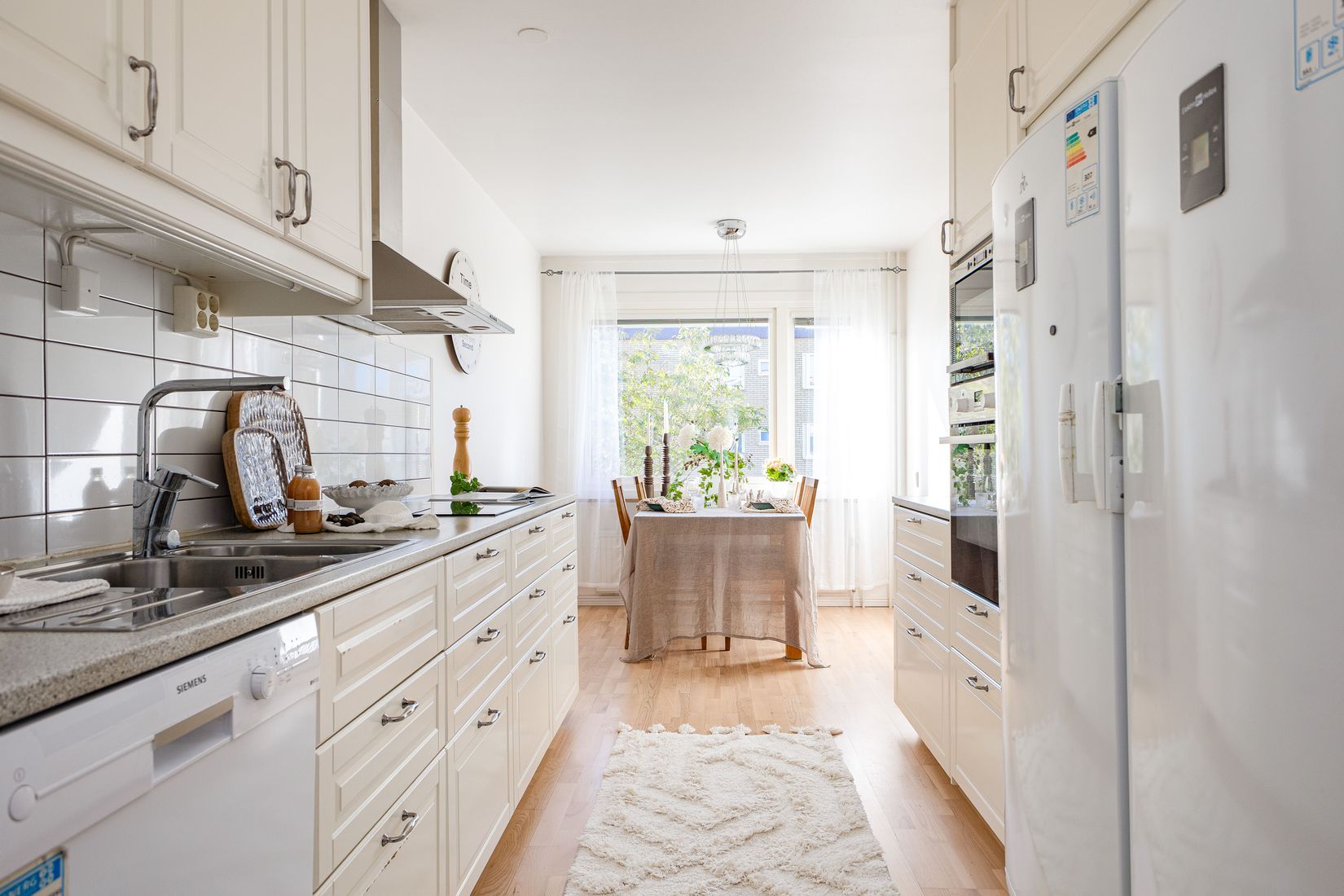 Bostaden är välplanerad med genomtänkta ytor och en ljus, inbjudande atmosfär som genomsyrar hela lägenheten. Köket är både praktiskt och smakfullt utformat, med gott om förvaring, full maskinell utrustning och plats för matbord - en självklar samlingspunkt för både vardagsmiddagar och umgänge med nära och kära.