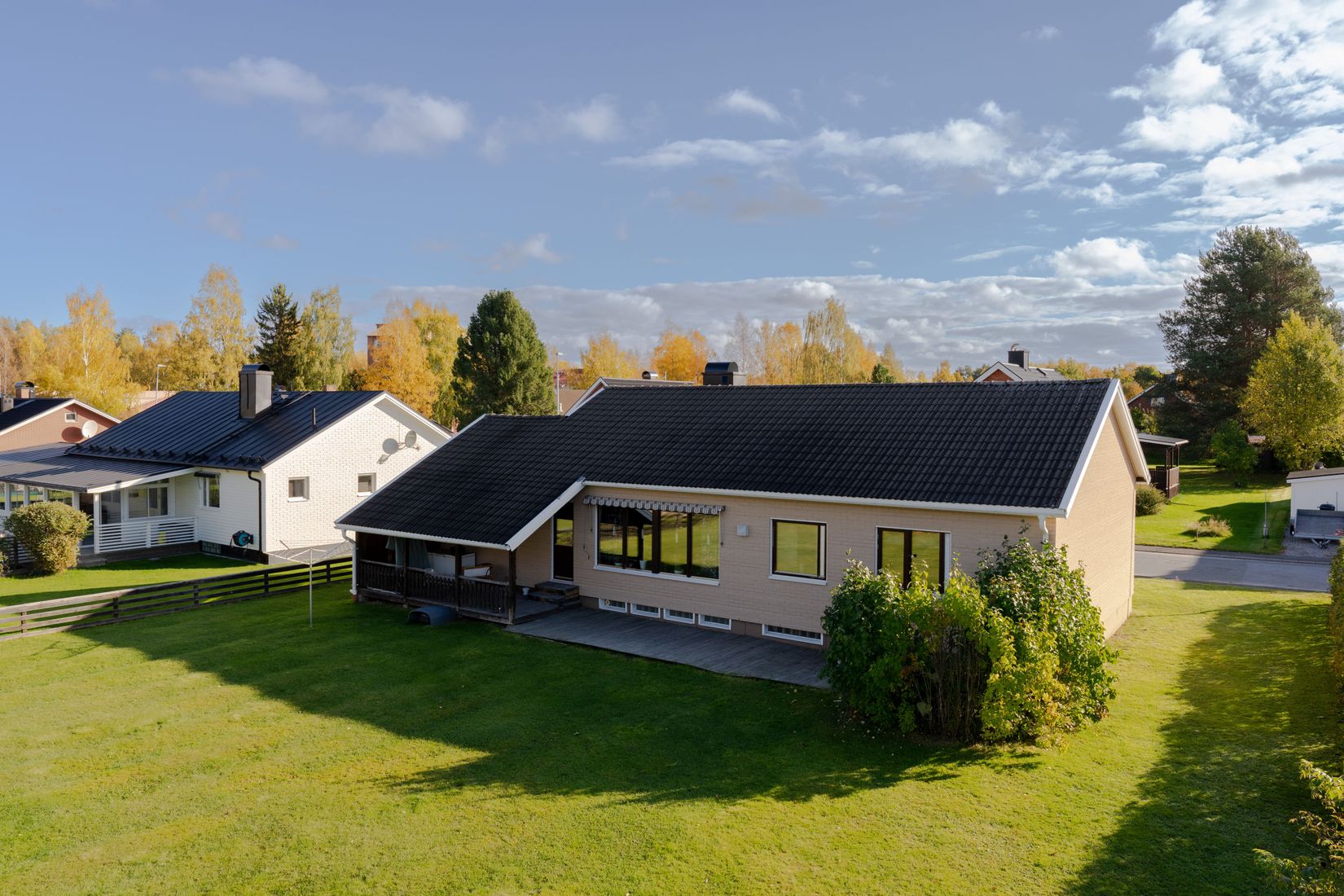 Från både söder och väster erbjuds möjlighet till att avnjuta solens strålar, oavsett när på dygnet. På fastigheten finns en väl tilltagen tomt med stora gräsytor. Fastigheten är placerad på ett bra sätt och gör huset fri från insyn från vägen. Dessutom är tomten omringad av buskage och staket. Tomten som omgärdar huset är i plan utformning, vilket gör det smidigt för barnen att leka fritt eller för dig med gröna fingrar kan odla och plantera både grödor och blomster.