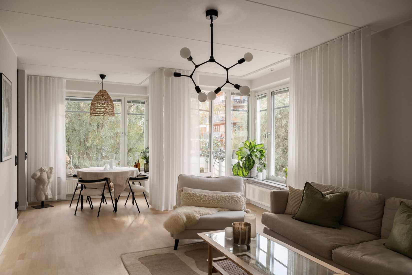 Välkommen till denna rymliga tvåa i perfekt gavelläge, med en stor balkong som bjuder på en fantastisk utsikt över Sjöstadsparterren.** Bostaden har en välplanerad layout där du möts av en inbjudande hall som leder vidare till de generösa sällskapsytorna. Här samsas matplatsen och ett semi-öppet kök i en smart och luftig disposition som skapar både funktionalitet och en tydlig avgränsning mellan kök och vardagsrum.