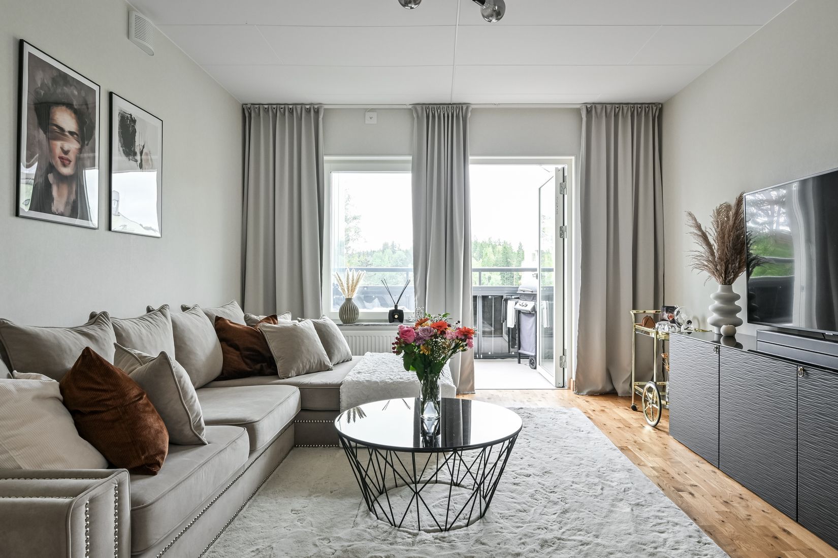 Denna bostad bjuder på allt från närhet till fin natur, utsikt mot grönområde och nära till alla tänkbara bekvämligheter samt en rymlig balkong i högt läge som ni kan tillbringa långa stunder. Direkt utanför porten har ni dessutom en fin grillplats.