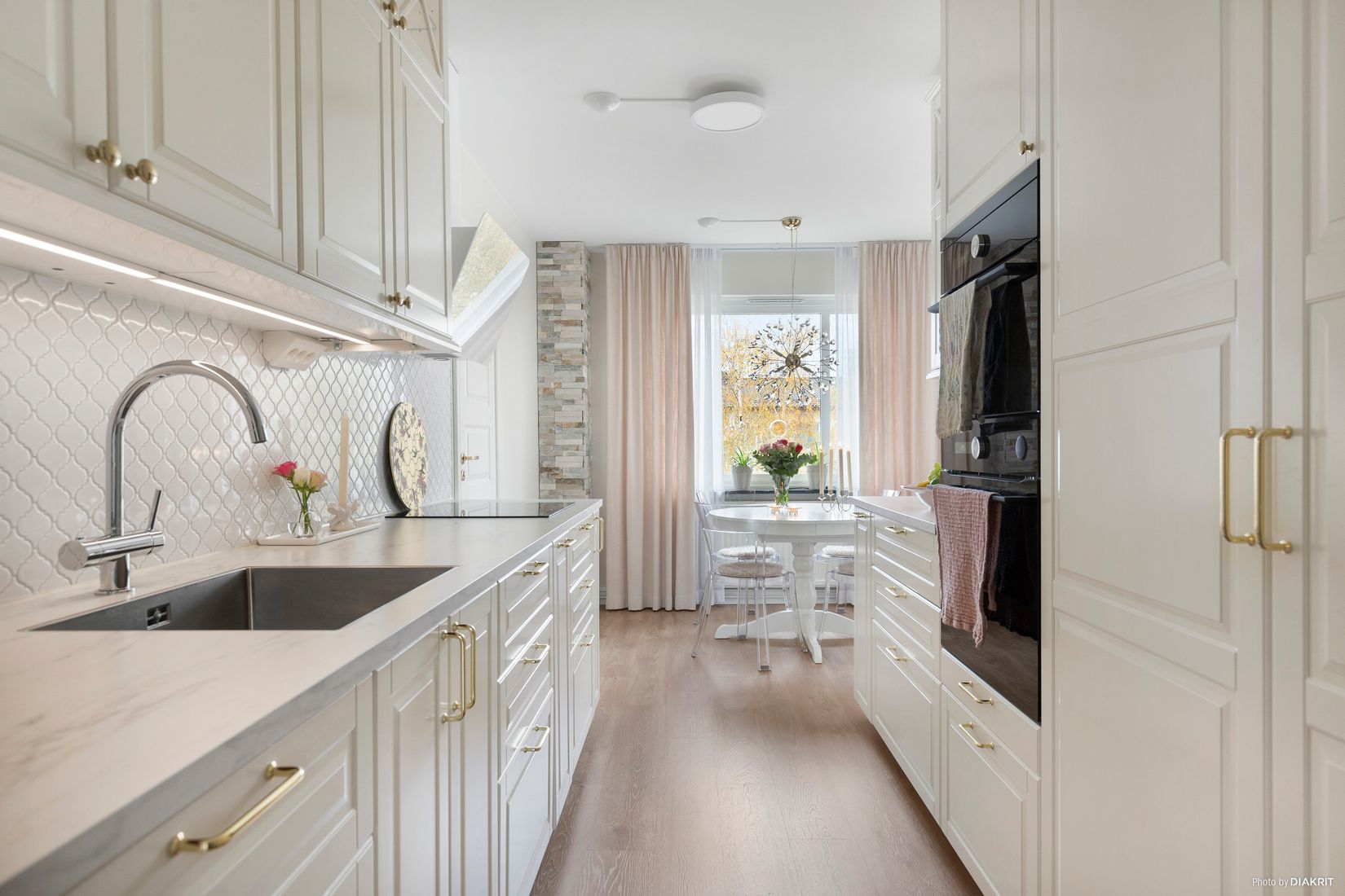 Välkommen till denna totalrenoverade 3:a om 78 kvm med inglasad balkong i populära och stabila Brf Korndahl. Bostaden är belägen högst upp i huset och erbjuder ett smakfullt kök med plats för matbord och stolar, ett rymligt vardagsrum med plats för både soffgrupp och matsalsbord samt två sovrum med utsikt mot innergården. I bostaden finns också ett helkaklat badrum med golvvärme och tvättavdelning samt en helkaklad WC med toalett och handfat. Till bostaden hör ett förråd.