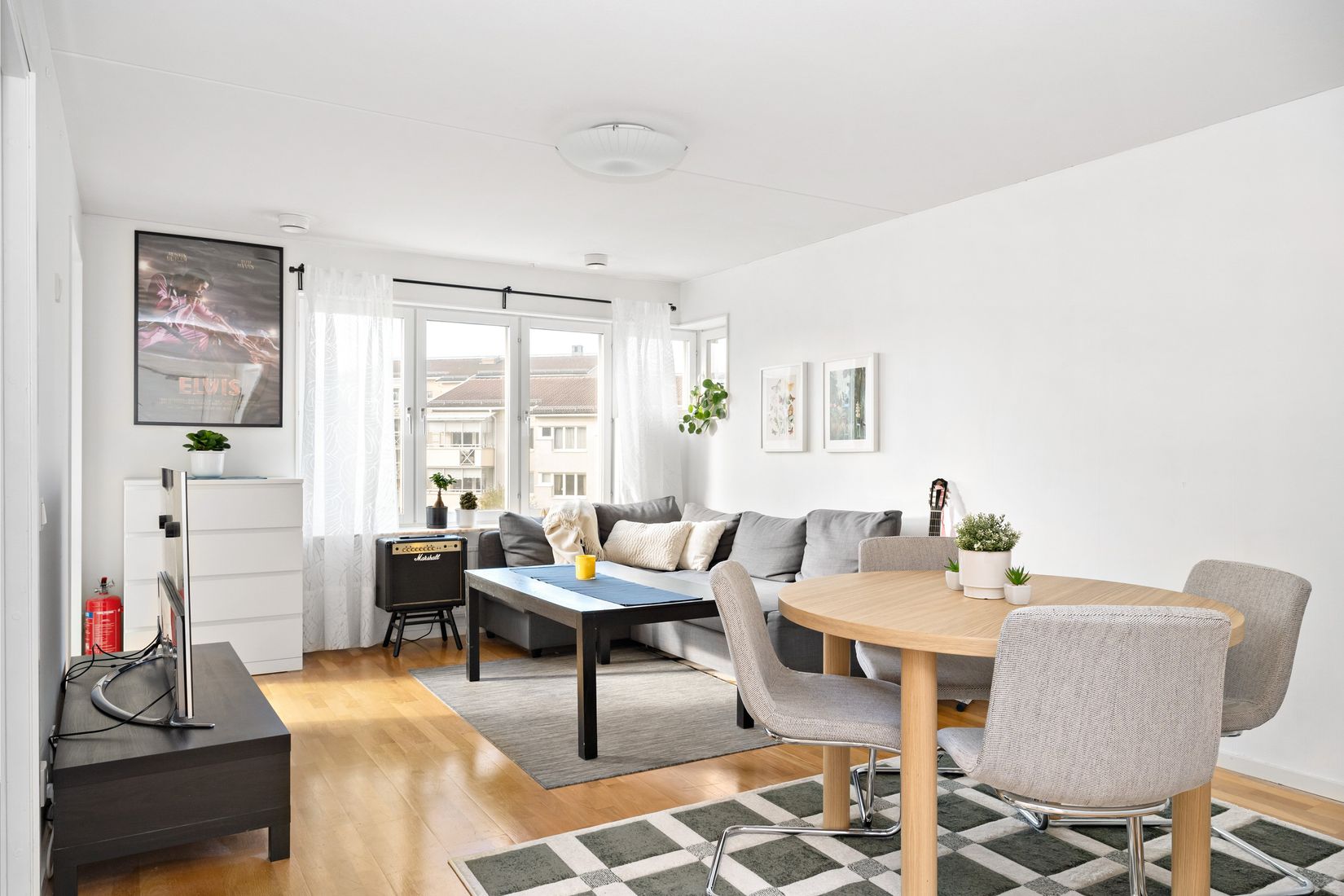 Lägenheten som är belägen på plan 3 tar du dig bekvämt med hissen till. Lägenheten om 43 kvadratmeter innehar kök, vardagsrum/sovrum, WC med dusch samt balkong. En större hall gör att utrymme finns för att ställa en säng om man inte vill ta utrymme från vardagsrummet, alternativt ha kontor eller förvaring.