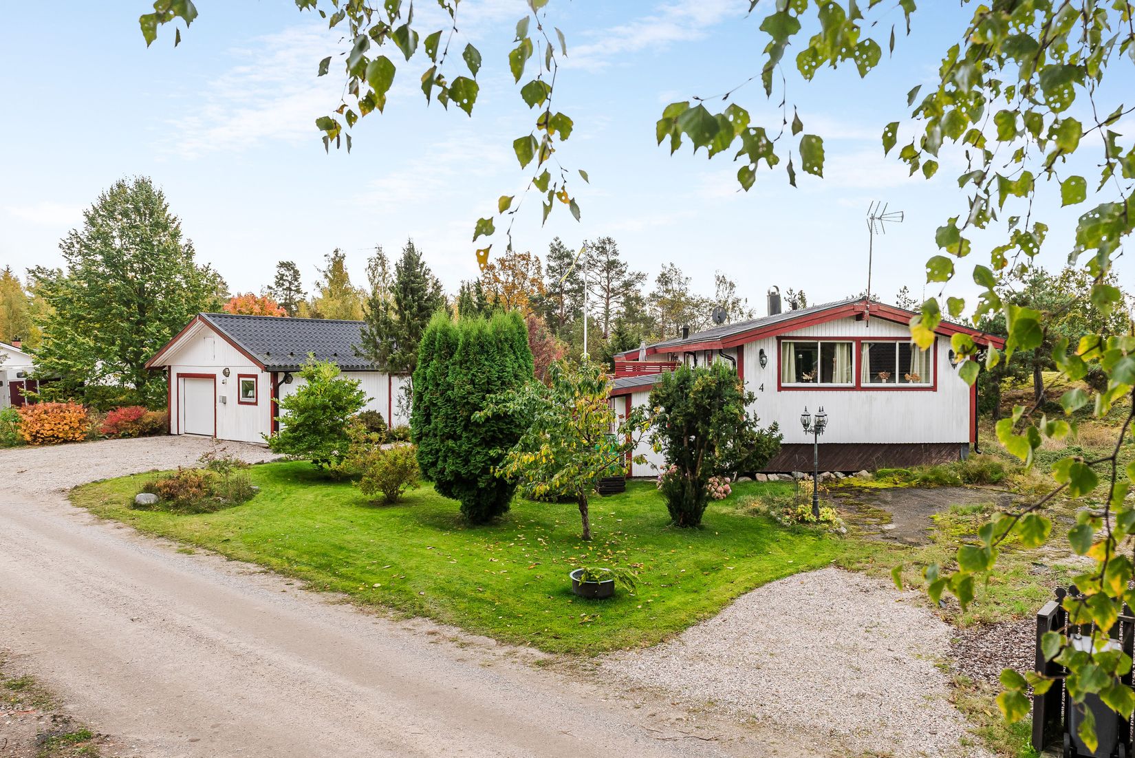Den lättskötta naturtomten omfamnar huset och skapar en grön och rogivande miljö – här kan du njuta av soliga dagar på altanen, eller låta barnen leka fritt i en trygg omgivning.