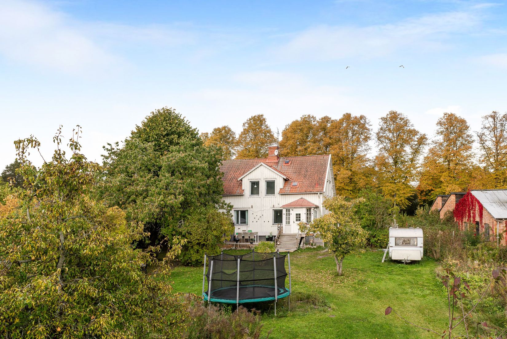 På uppfarten finns plats för flera bilar och på tomten står även en redskapsbod. Entrén präglas av två charmiga glasverandor med ljusinsläpp från flera håll.