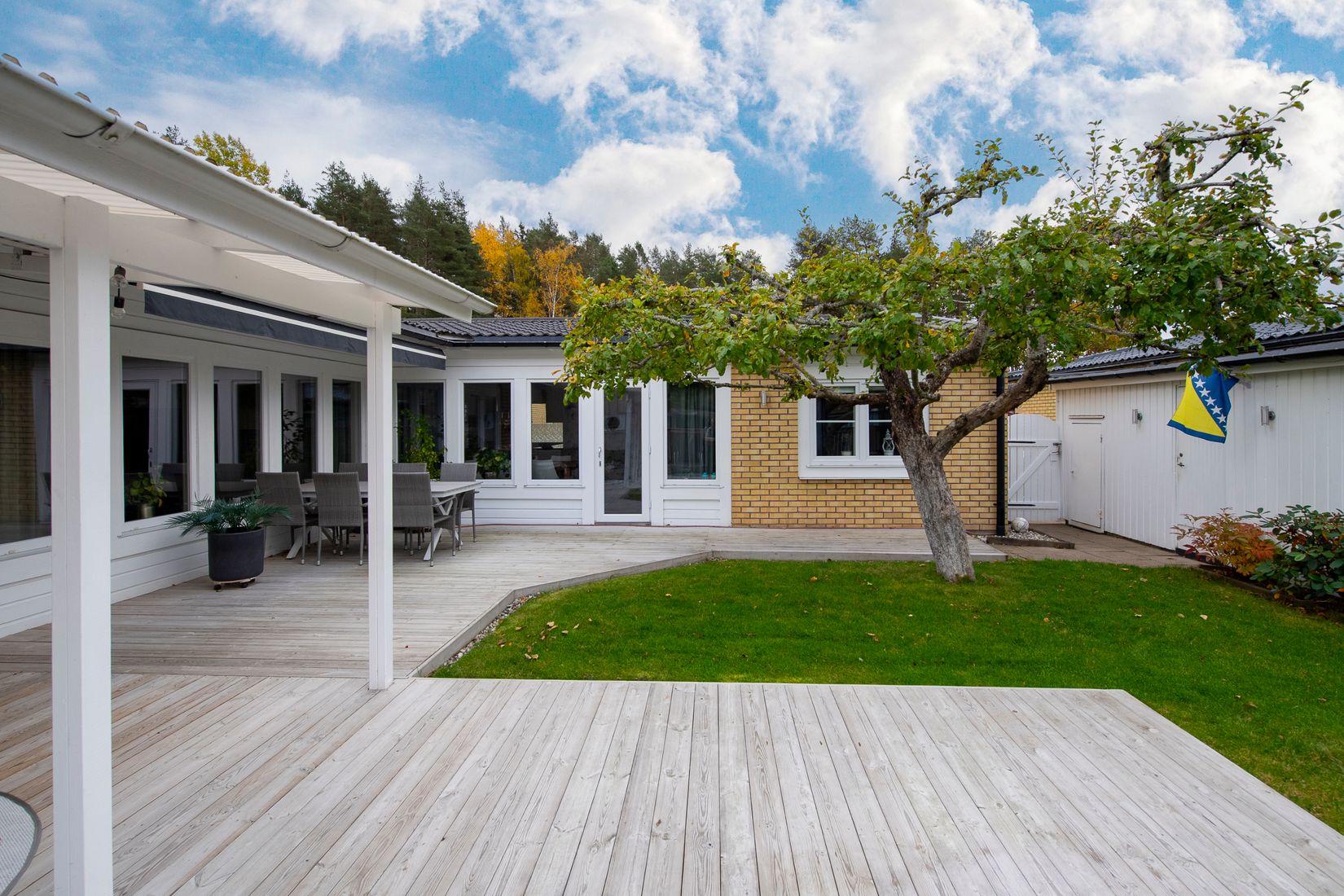 Den insynsskyddade trädgården bjuder på härliga uteytor, fruktträd och gott om plats för både umgänge och lek. Här finns ett stort trädäck, ny markis, grillplats och förråd, en perfekt miljö för både avkoppling och trevliga stunder med familj och vänner. Här bor du lugnt och tryggt med närhet till skolor, förskolor, grönområden, Erikslund Shopping Center och smidiga kommunikationer mot city.