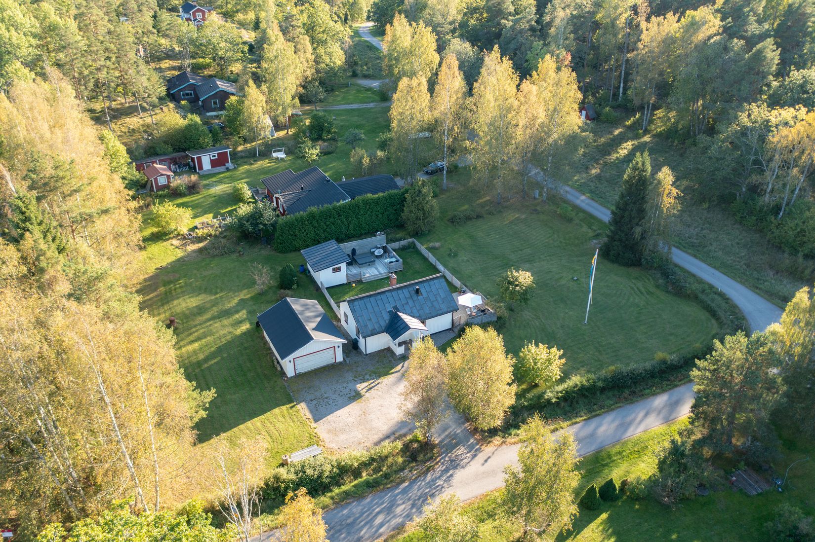Som adressen avslöjar så befinner vi oss nära havet. Detta trevliga hus på helt plan och välskött hörntomt har omedelbar närhet till båtbryggor och bad i vackra Säbyviken.
