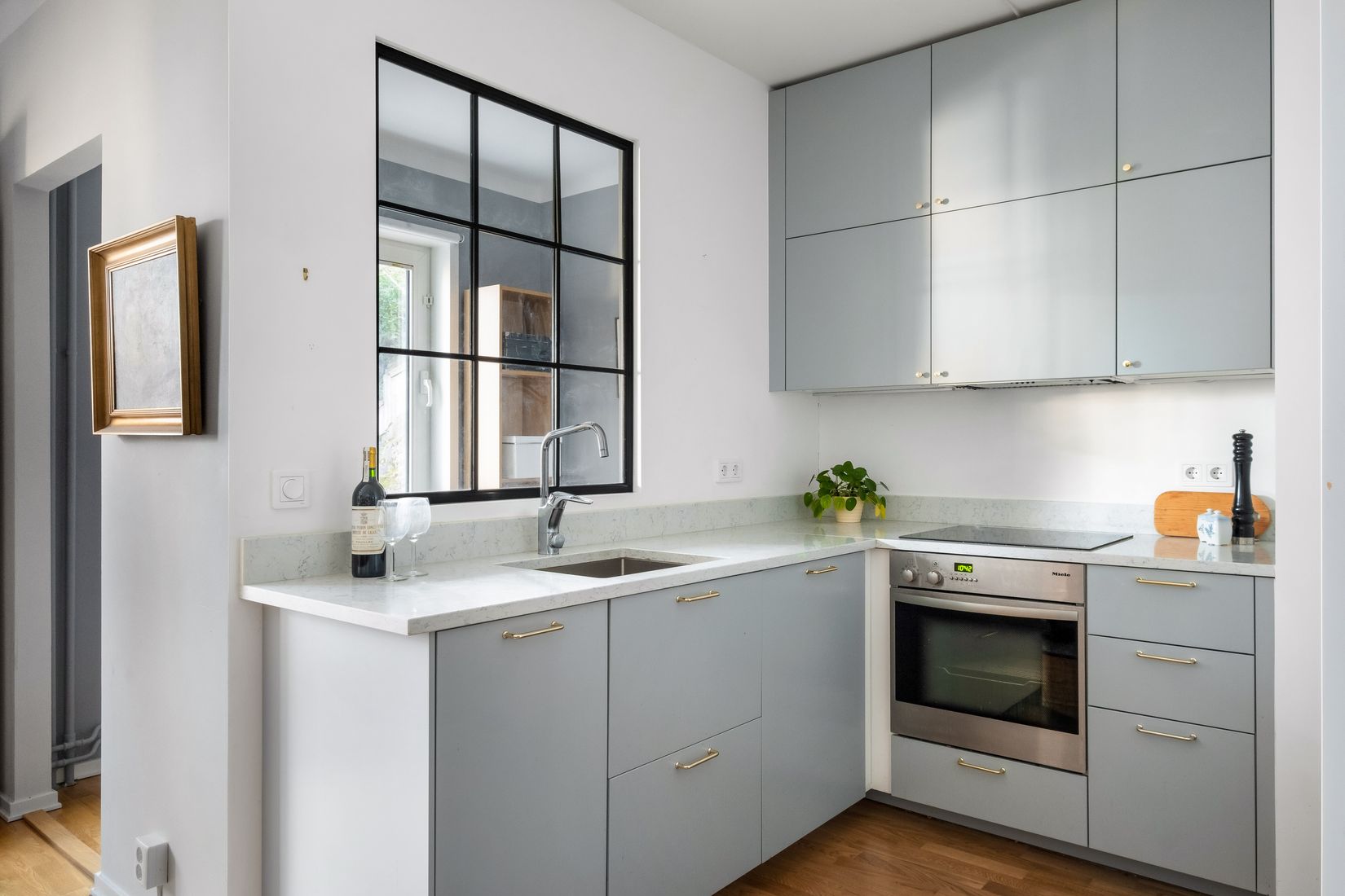 Den öppna planlösningen mellan kök och vardagsrum bjuder in till ett socialt boende med gott om plats för både soffa och matbord. Här finns även generösa förvaringsmöjligheter som gör det enkelt att hålla ordning. Bostaden har stora fönsterpartier som ger en fin utsikt och ett strålande ljusinsläpp.
