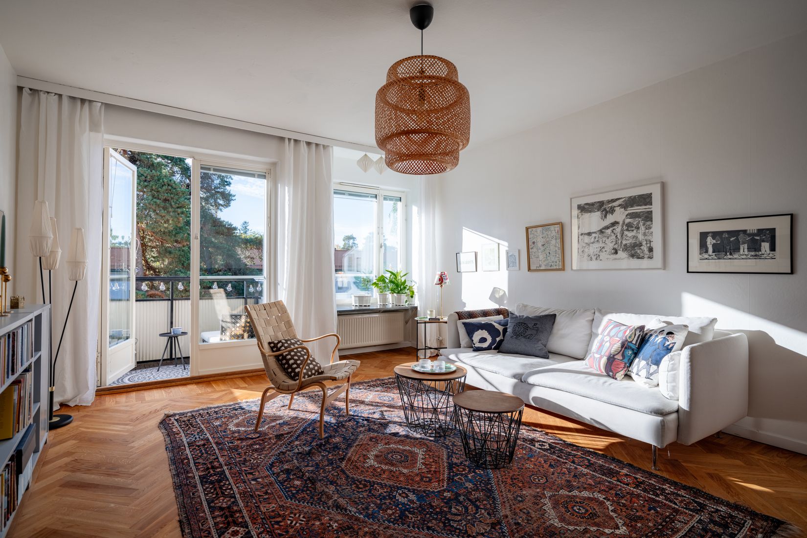 Högst upp i huset, med ett fritt och soligt läge, väntar denna välplanerade tvårummare om ca 62 kvm som enkelt kan anpassas efter livets olika skeden. Dubbeldörrarna mot den generösa balkongen i söderläge bjuder in ljuset och skapar en härlig förlängning av vardagsrummet – perfekt för såväl morgonkaffe som långa sommarkvällar. Tack vare genomgångsläget med fönster i två väderstreck får bostaden ett naturligt ljusinsläpp och en känsla av rymd, samtidigt som den ligger skyddad från insyn.