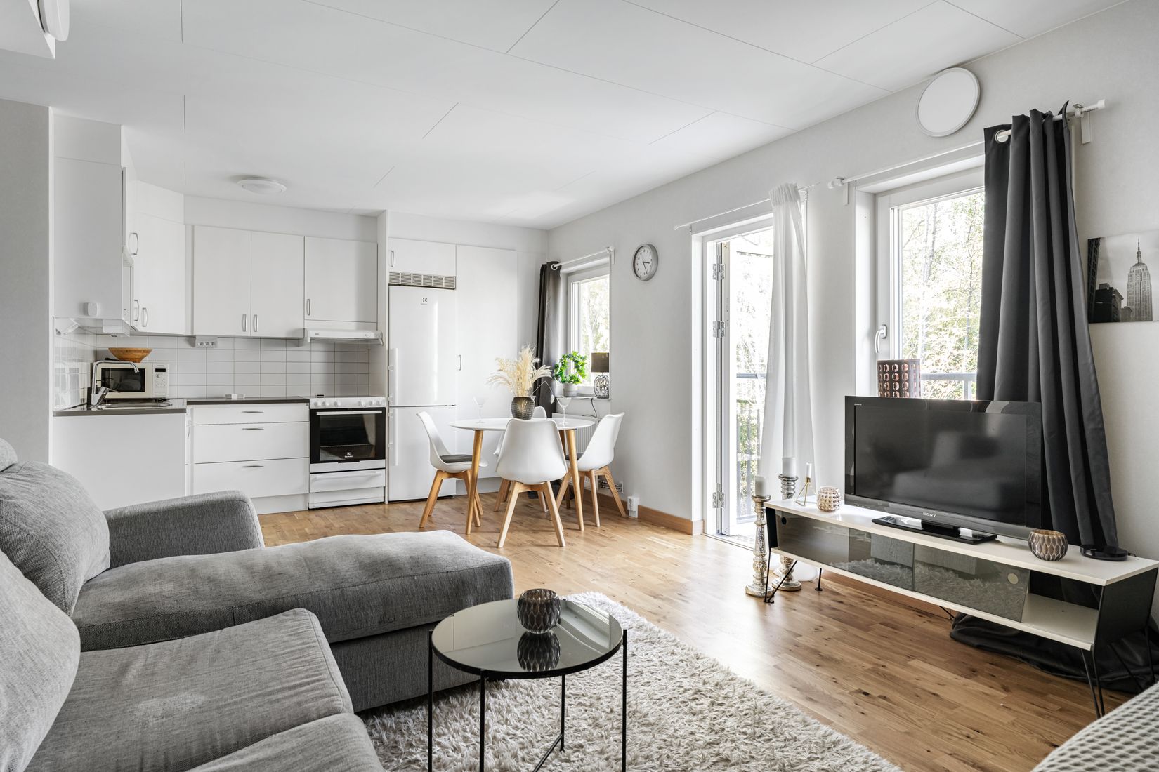 Genomgående parkettgolv och tapetserade väggar, generös hall med förråd, badrum, allrum med öppen planlösning mot kök och utgång till en härlig balkong i rätt solläge. Här bor du bekvämt med allt du behöver!
