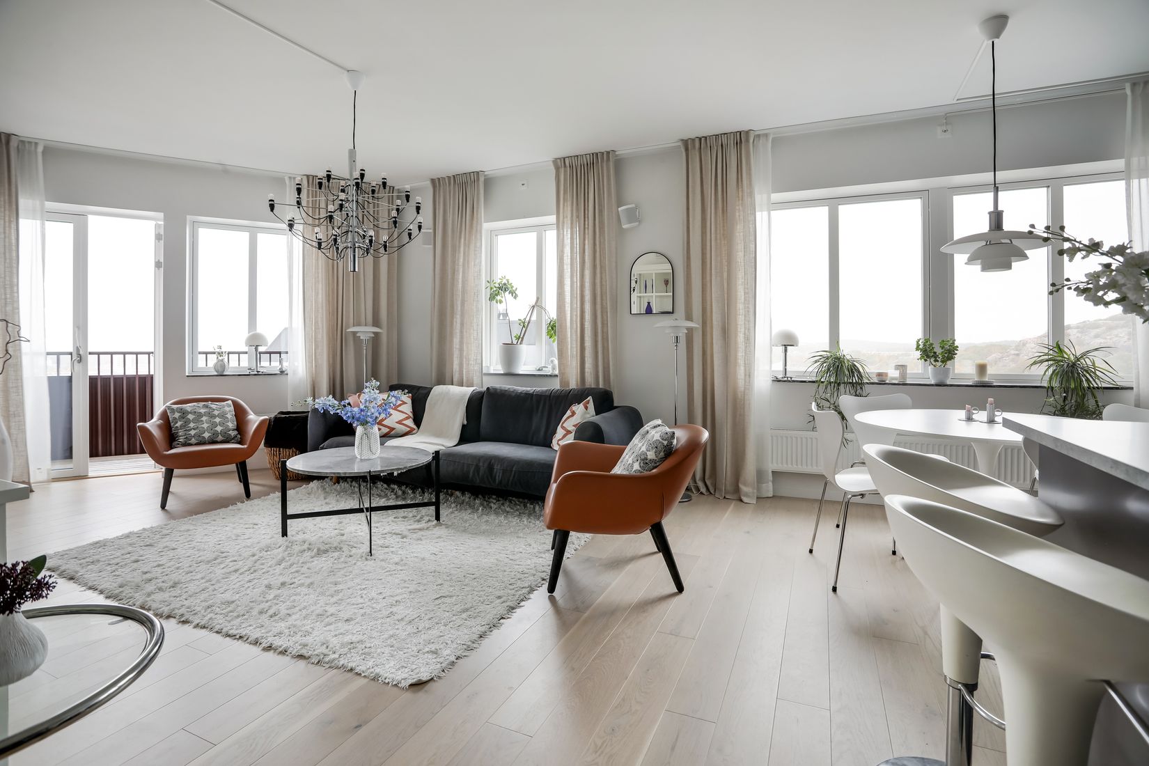 På Karlavagnsgatan 1 finner ni en bostad som passar er med höga krav. Genomgående moderna färg-, och materialval gör inrednings valen enklare. Kök och vardagsrum samsas i öppen planlösning där en köksö ger en fin detalj till rummet. Stora fönsterpartier släpper in ljuset som får fritt spelrum samtidigt som ni njuter av det fria vyer. Tack vare bostadens höga läge är ni högt ovan mark och bor fritt från insyn. Balkongen ligger i västerläge där ni blickar ut över vattnet och det rika båtlivet på älven - en vy man aldrig tittar sig trött på. Masterbedroom har en rymlig klädkammare och eget badrum med dubbla handfat vilket ger en lyxig känsla. I fil ligger två till sovrum som också kan lämpa sig till kontor. För er som söker modernt, ljust och insynsskyddat är detta bostaden för er!