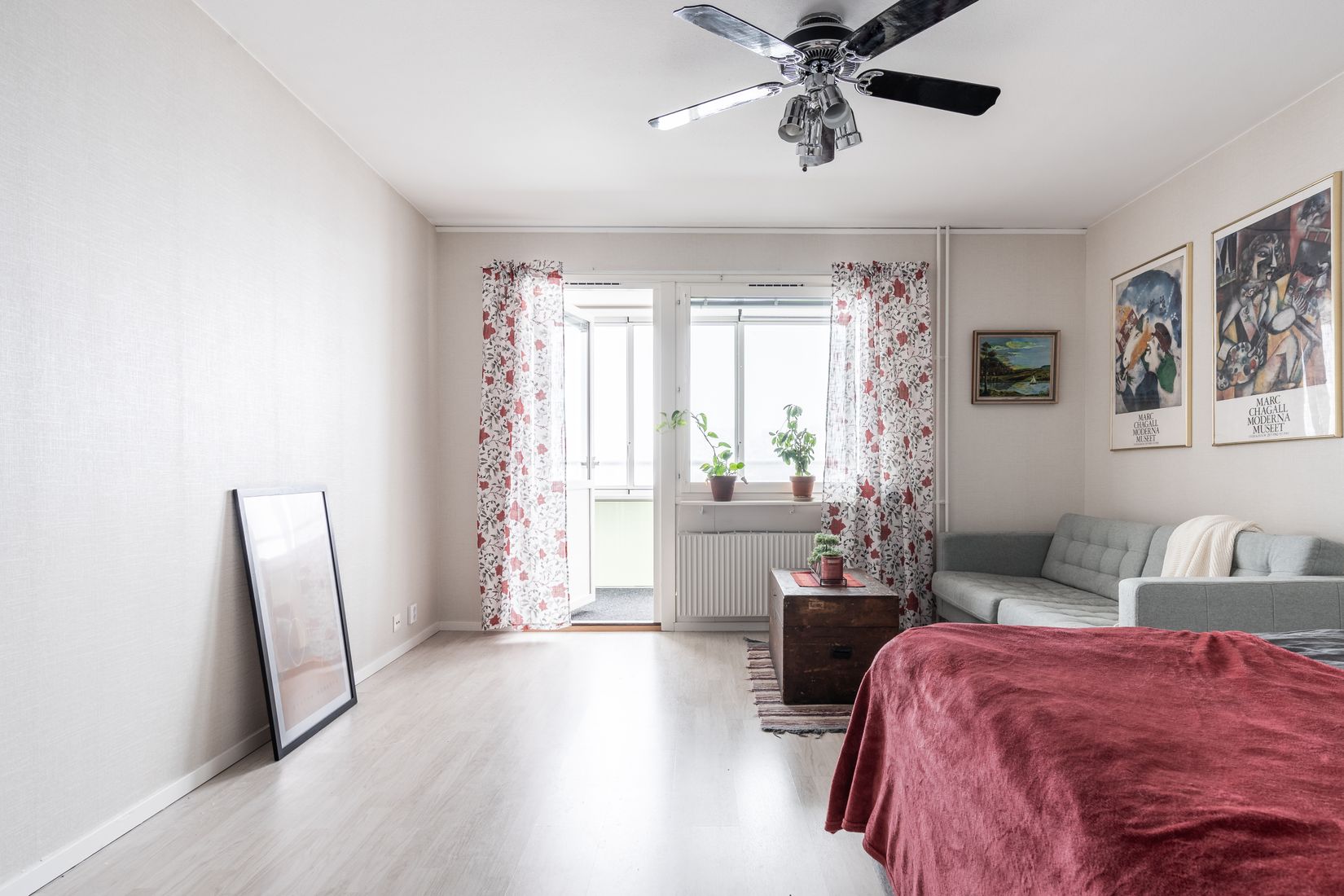 Bostaden karaktäriseras av ett trivsamt och rymligt allrum som rymmer både soffa och dubbelsäng sedan finns det gott om plats för ett matbord i matrummet. Från vardagsrummet nås den inglasade balkongen som blir som ett extrarum från tidig vår till sen höst och balkongen bjuder på många härliga soltimmar.
