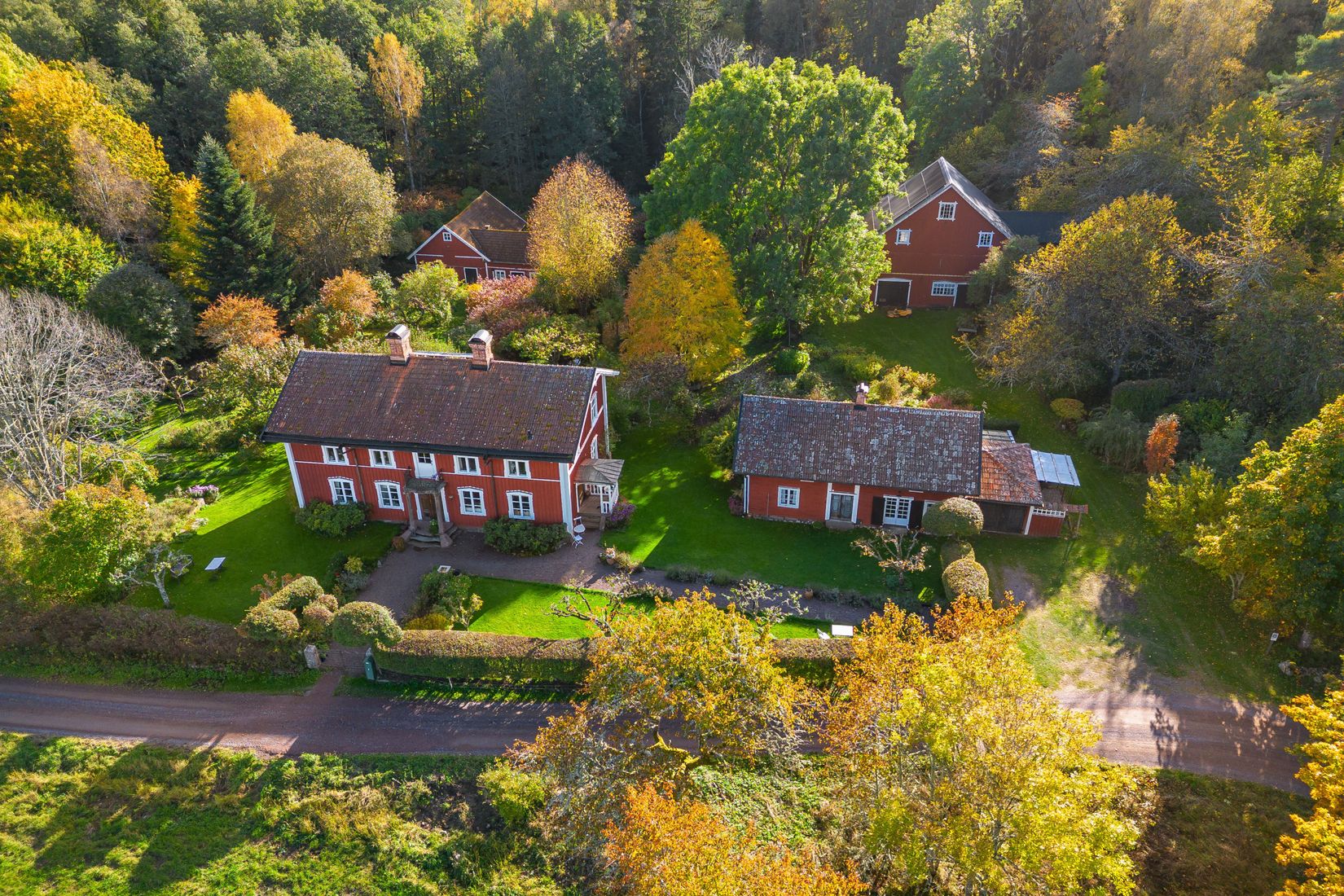 Huvudbyggnaden är ett riktigt smycke - en arkitektonisk skatt med pampig granitsockel, balkonger och trappor i granit, samt en välvd vinkällare i samma robusta material. Interiört bjuds på generösa ytor, vackra originaldetaljer såsom kakelugnar, pardörrar, trägolv och listverk, samt moderna bekvämligheter som bergvärme. Boytan är välplanerad med flera sovrum och sociala ytor över två plan.