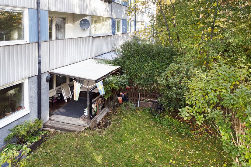 En trappa ner möts du av bostadens sociala delar med separat kök och vardagsrum. Planlösningen ger en tydlig uppdelning mellan sällskapsytor och privata rum, vilket gör hemmet lätt att trivas i för både den större familjen och paret som vill ha gott om plats. Från vardagsrummet når du den fantastiskt mysiga altanen - en grönskande oas som bjuder in till avkoppling och umgänge under sommarhalvåret.