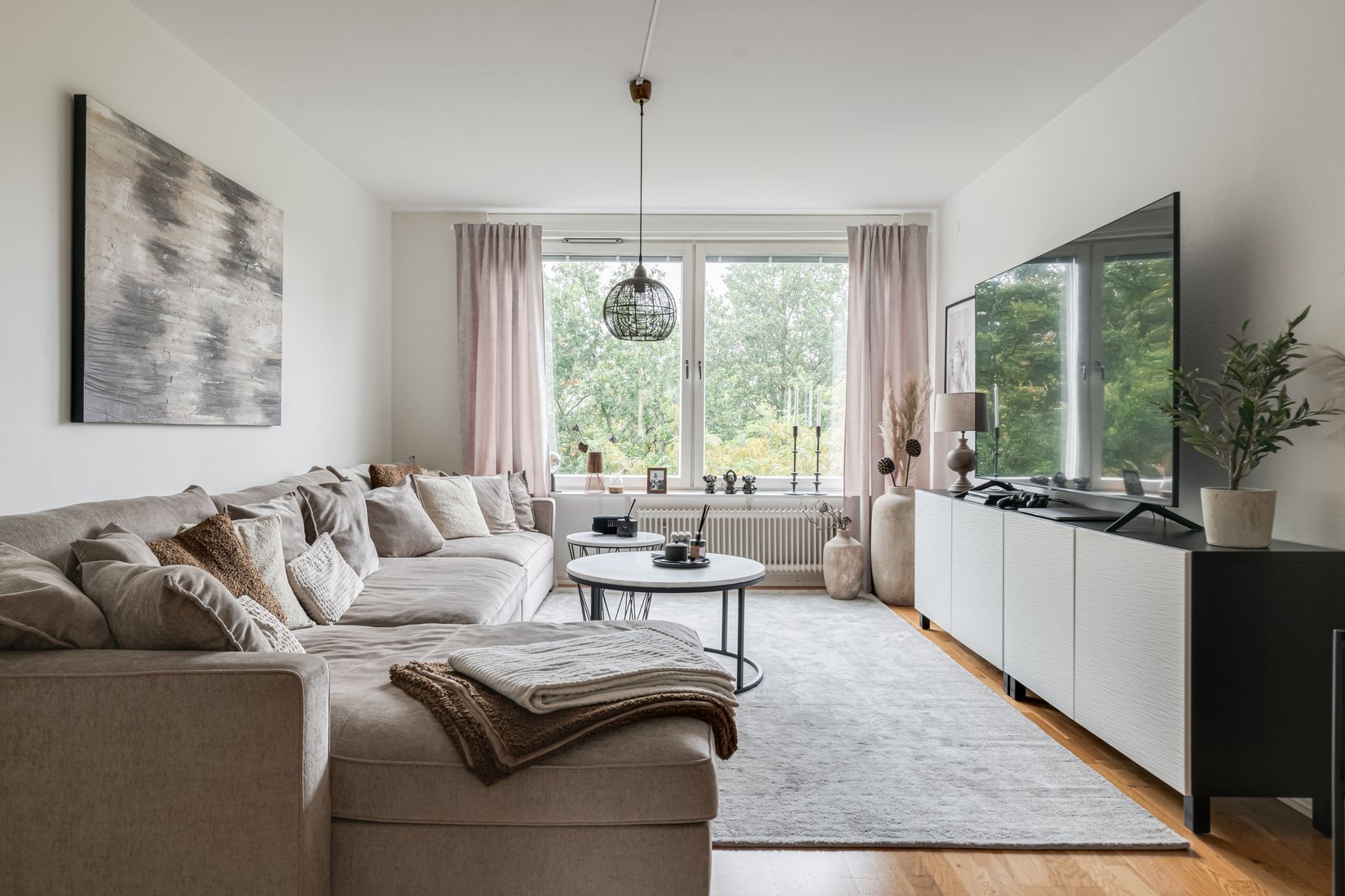 Den välplanerade boytan om 78,5 kvm gör ingen besviken och erbjuder bland annat två lättmöblerade sovrum, ett modernt och funktionellt kök, ett helkaklat badrum samt en större klädkammare. Vardagsrummet är luftigt och ljust och blir naturligt familjens samlingspunkt. Här får du enkelt plats med både mat och soffgrupp. Bostadens balkong har fina vyer över området och grönskan. Föreningen är populär och erbjuder förutom stabilitet även möjlighet att tvätta bilen i garaget!