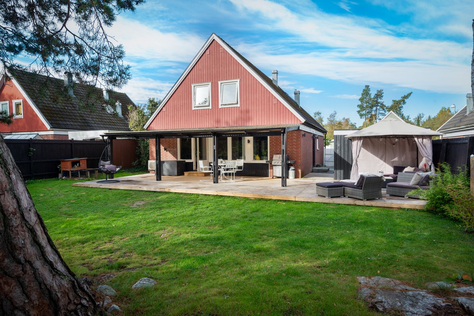 Välskött trädgård med fruktträd, bärbuskar och fin gräsmatta både på framsidan och baksidan huset bjuder in till skoj och lek. Förråd samt garageutrymme. Gångavstånd till Nacka golvbanan, Ekedalsspåret och cykelavstånd till badsjö samt Skeviksgården. Några minuters bilfärd till Norra Lagnö samt pendelbåt till City. Genväg till förskola och skola i Munkmora. Nära alla faciliteter i Gustavsbergs centrum.