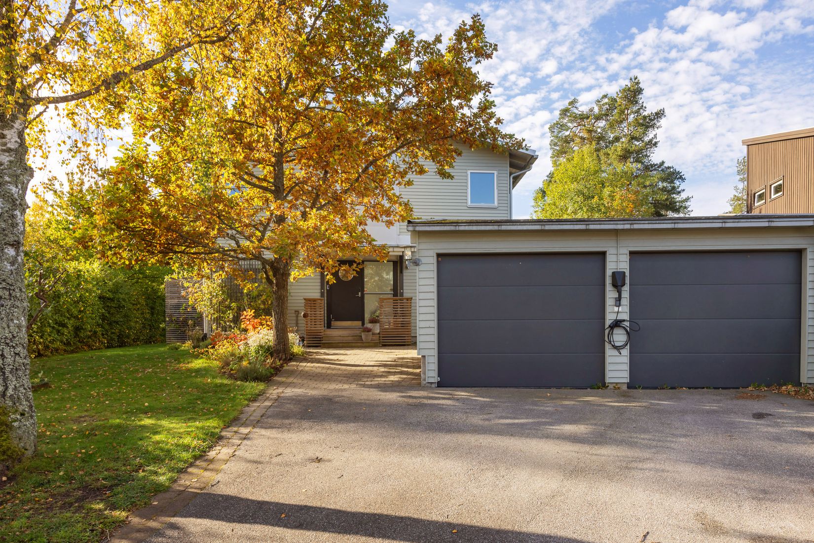 Sociala ytor på entréplan och privata rum på övre plan skapar en mycket trivsam och flexibel boendemiljö. Den stora, sydvästvända tomten bjuder på sol hela dagen, grönskande gräsmatta, skyddad uteplats och en rogivande naturdel med skogskänsla – allt insynsskyddat och inramat av träd och vacker häck. Vid infart finns rymligt och praktiskt dubbelgarage.