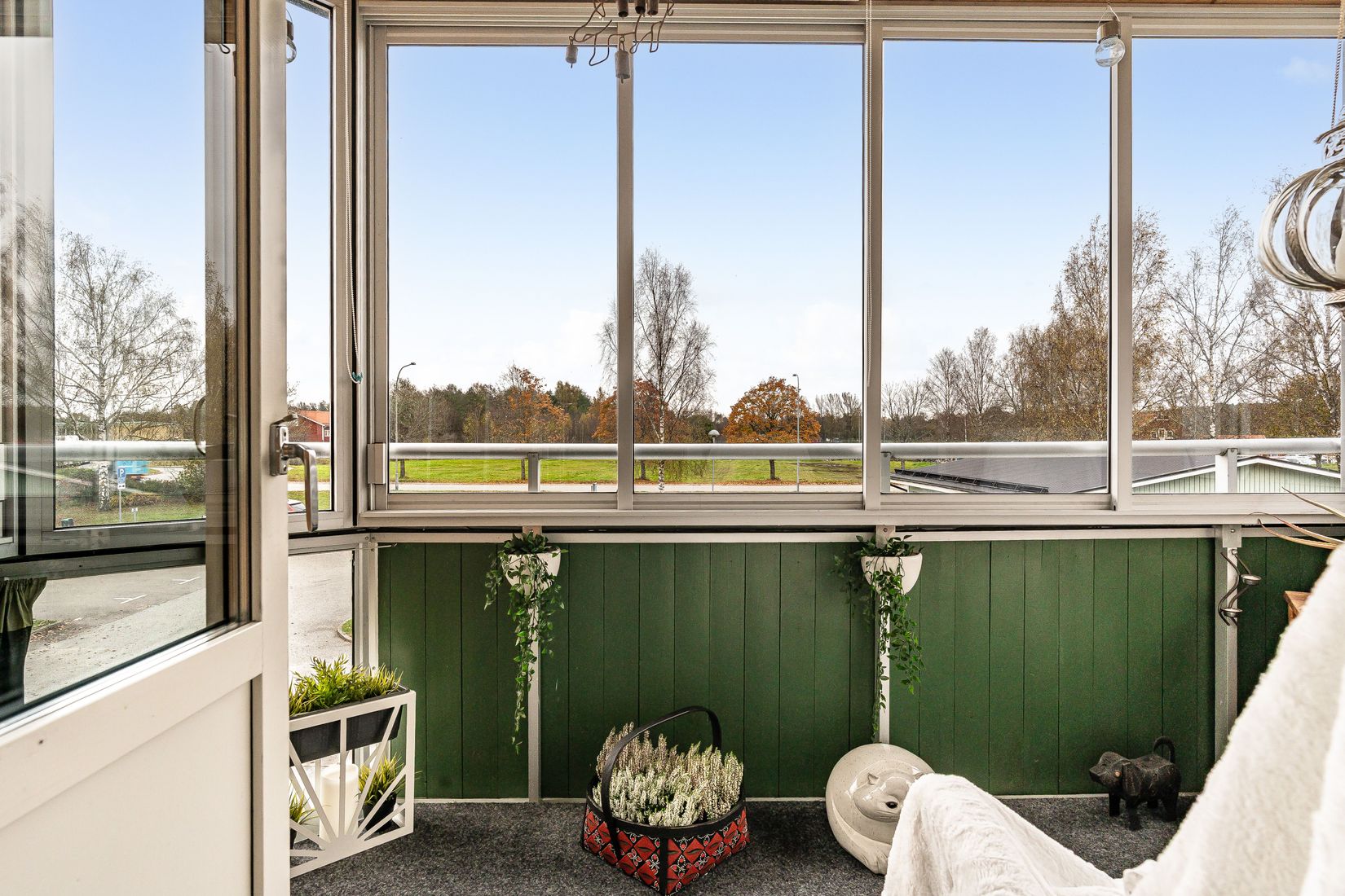Välkommen till denna ljusa och trivsamma lägenhet i populära Solhaga – ett hem där ljuset flödar in från tre väderstreck och där den inglasade balkongen i soligt söderläge bjuder på härlig utsikt mot Karlslund Arena. Här bor du bekvämt en trappa upp med parkering och buss alldeles intill.