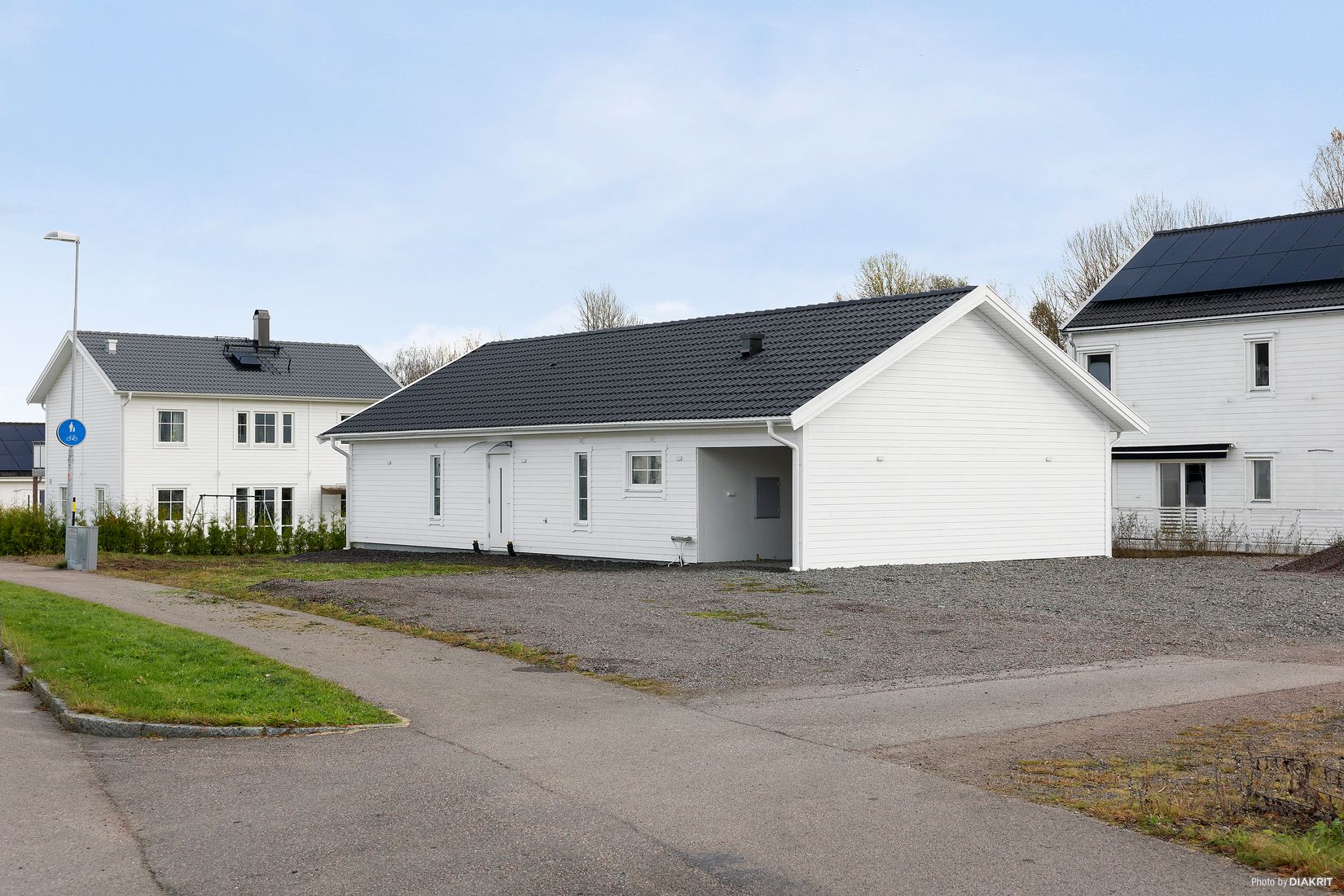 Hela huset är utrustat med golvvärme och frånluftsvärmepump, vilket ger en behaglig inomhustemperatur året runt. Den smarta planlösningen gör huset lättskött och trivsamt, perfekt för familj, par eller för dig som vill ha allt på ett plan.