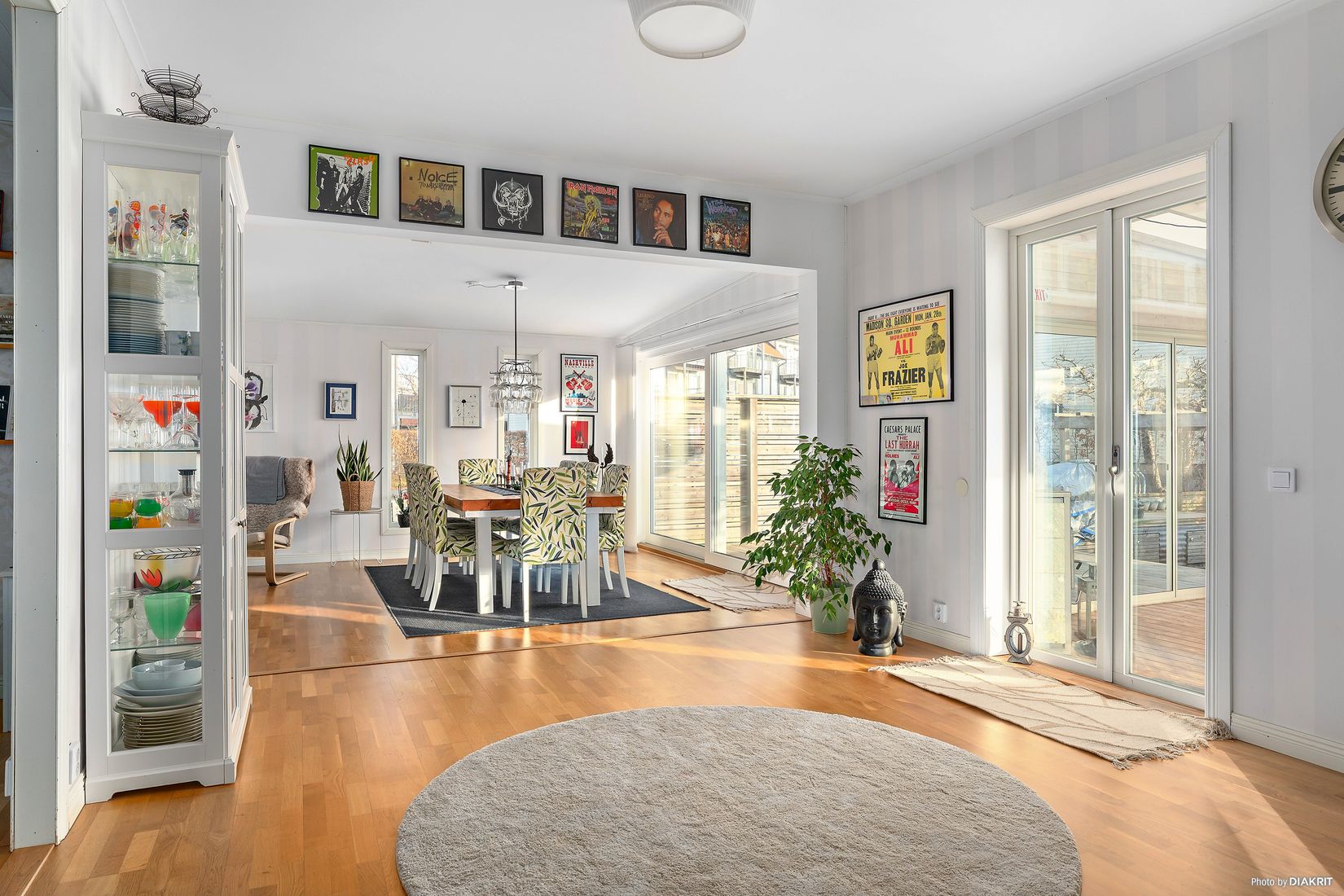 I lugnare kvarter med centrum, tågstation, skolor mm på bekvämt promenadavstånd har vi nu denna stora villa med många möjligheter! Här får du dels en toppenfin egen bostad plus att du har två extra lägenheter för t.ex uthyrning, generationsboende eller kanske önskar du dessa härliga ytor till dig själv och familjen. Utemiljön är nåt extra då du har både balkonger, inglasat uterum och stort skjutparti ut till den ljuvliga altanen i etagé - här ute älskar man att vara. Förbereda middagarna vid den långa gjutna bänkskivan med pizzaugn och inbyggd grill under vindruvsrankorna som klättrar i pergolan är ljuvligt. Staketet runt om ramar in till en lugn och skyddad oas.