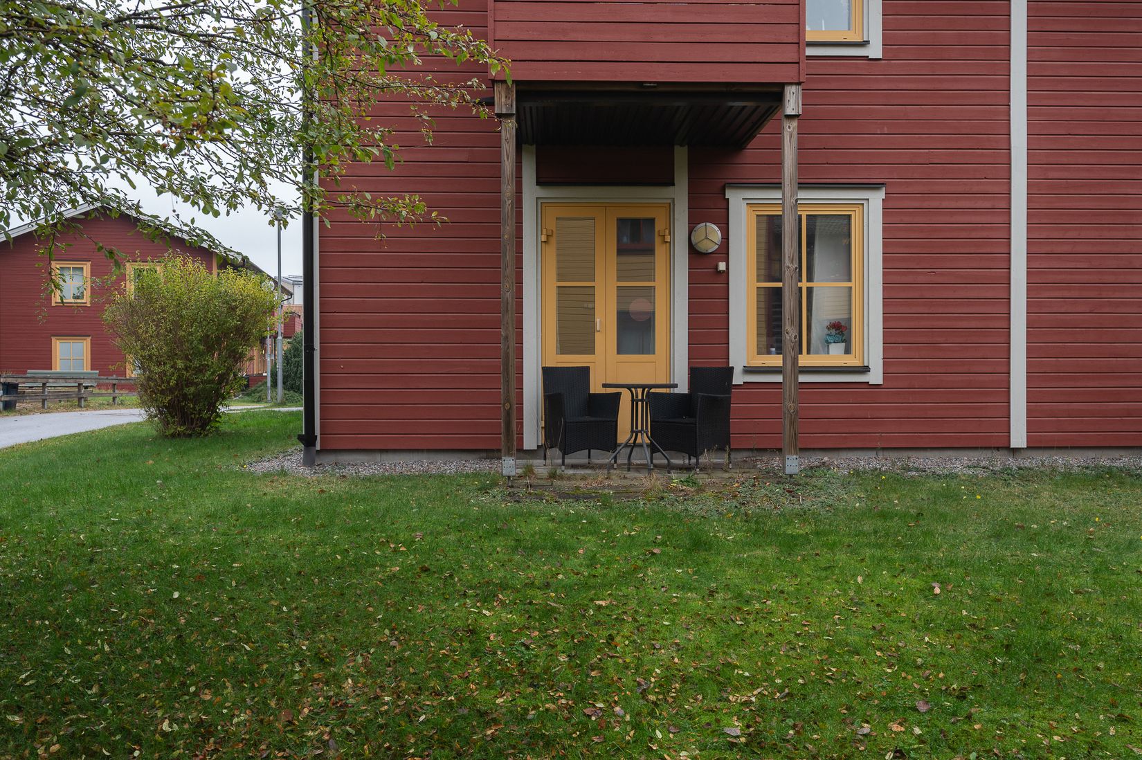 Från parkeringen tar du dig helt utan ett enda trappsteg hela vägen in i bostaden, perfekt för dig som uppskattar bekvämlighet, oavsett livssituation. Den egna uteplatsen i markplan blir som en naturlig förlängning av vardagsrummet och ger ett härligt privatliv mot grönska och lugn.
