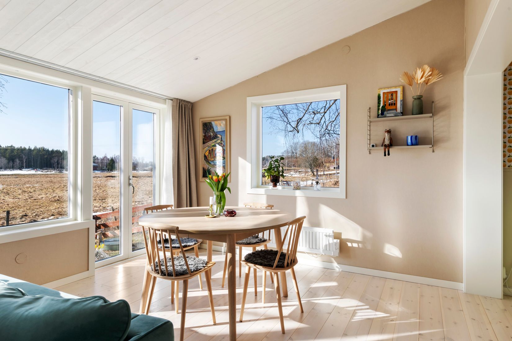 Huset är verkligen ett hem att trivas i och njuta av lugnet i en vacker miljö omkring er och med generösa och väldisponerade kvadratmeter över två plan med en stilfull interiör. Torp om 83 m² med nybyggd tillbyggnad. Entréplanet erbjuder ett nyrenoverat badrum i modern stil och färgval. Stilfullt nyrenoverat kök i en graciös och detaljrik utformning. Luftigt vardagsrum med en öppen spis som höjer mysfaktorn. Spatiöst matrum med stort fönsterparti som ger ett trevligt ljusinsläpp och vacker utsikt över grönska och ängar. En trappa upp möts ni av en passage som binder ihop de två sovrummen på planet. Kattvind med förvaringsmöjligheter. Vid hallens förråd undertrappen når ni en jordkällare om 2 m².