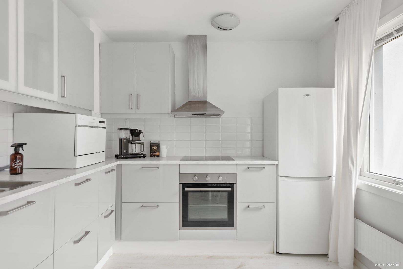 Lägenheten bjuder på en smart planlösning med tydlig avskild sovalkov, vilket ger känslan av ett separat sovrum. Det rymliga vardagsrummet har plats för både soffa och matgrupp, och de stora fönstren släpper in gott om ljus. Köket (renoverat 2019) är yteffektivt och funktionellt, med gott om förvaring och arbetsyta. Badrummet är fräscht och lättskött.