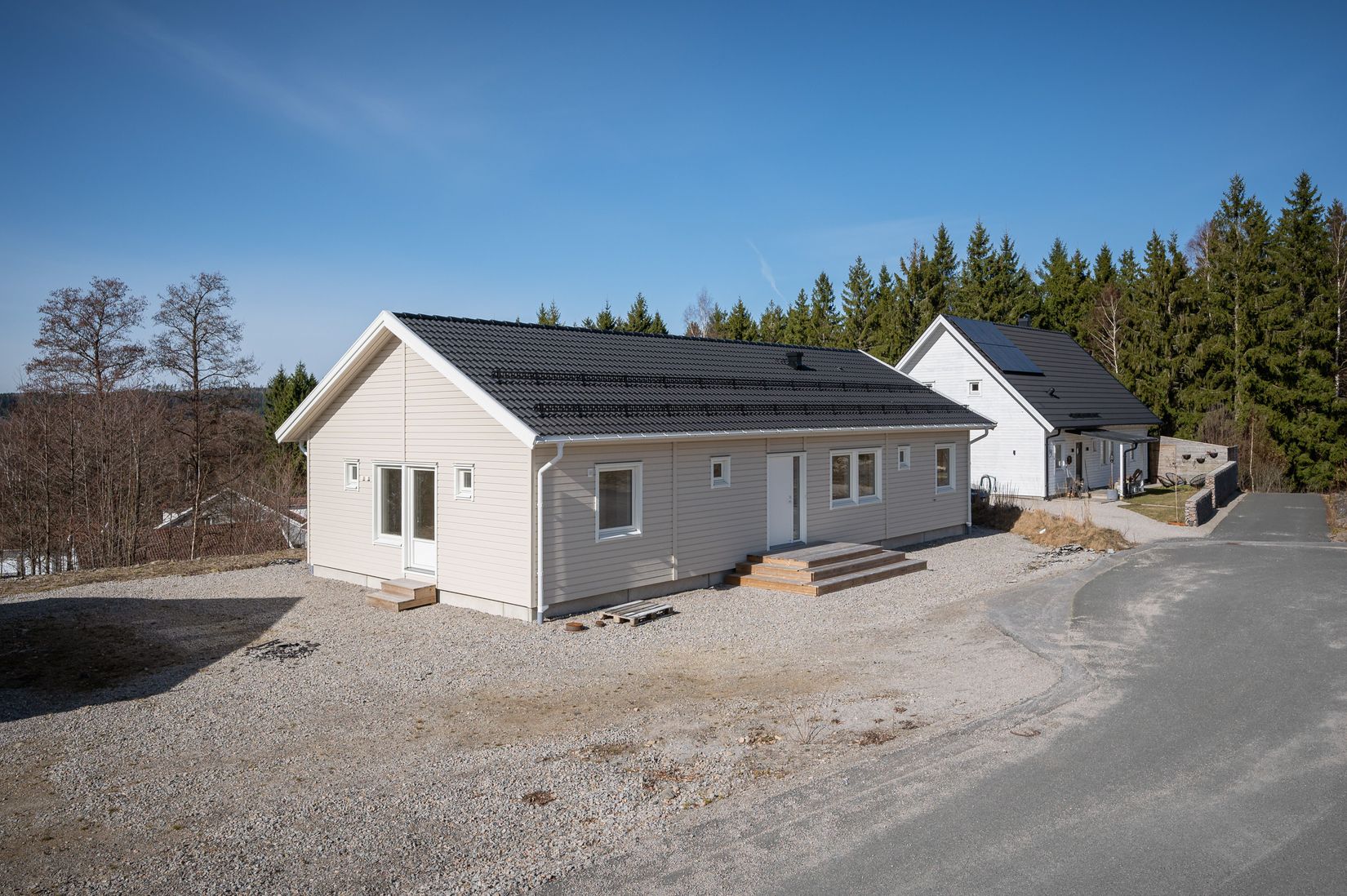Här får du ett hus med tre sovrum, ett stort vardagsrum med plats för både mat- och soffgrupp där den stora ytan flyter samman med köket och blir en social plats för hela familjen – och många vänner.