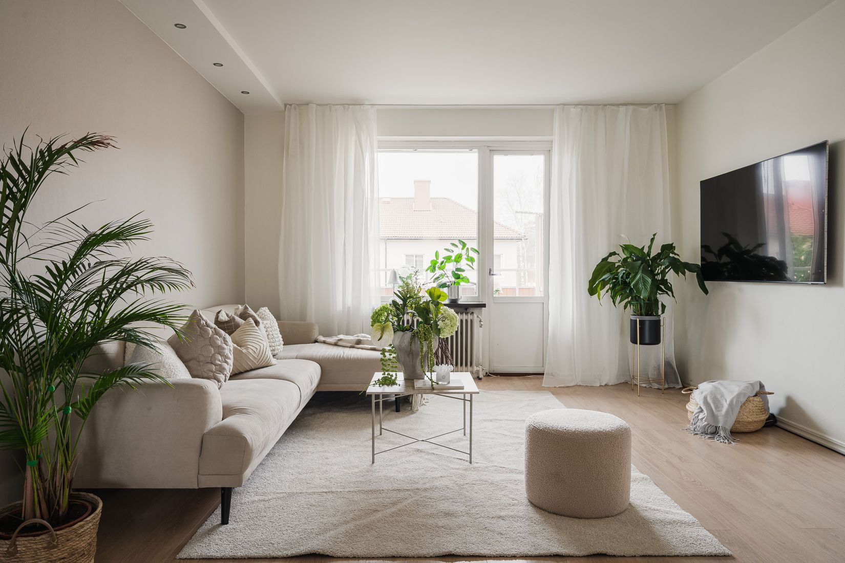 Köket erbjuder en praktisk disposition och kan med rätt vision bli hemmets hjärta – oavsett om du vill skapa ett modernt kök med öppna sociala ytor eller en mer klassisk, ombonad miljö. Intill finns vardagsrummet som rymmer både soffhörna och matplats och som dessutom leder ut till balkongen i västerläge. Här kan du njuta av soliga kvällar och skapa ett extra rum för avkoppling.