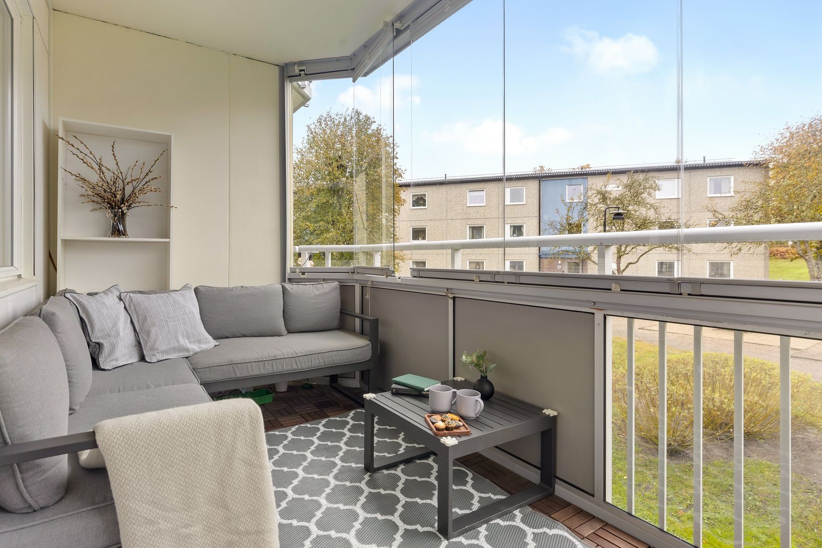 - Stor, inglasad balkong i sydväst med eftermiddag/kvällssol
